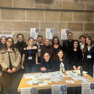 Im historischen Rathaussaal begrüßten am 03.02.2026 Oberbürgermeister Marcus König, Schulrefe-rentin Cornelia Trinkl und Leiterin des Instituts für Pädagogik und Schulpsychologie Nürnberg Barbara Gittel zahlreiche Gäste zum Demokratie-Empfang der Nürnberger Schulen. Auch wir waren mit ver-schiedenen Aktionen unter dem Motto „Demokratie lebt vom Mitmachen! – Mitwirkung und Mitge-staltung am JSG“ dabei.
