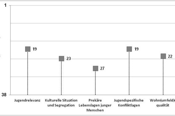 Durch den innerstädtischen Vergleich mittels Rangplatzprofile lassen sich zudem Priorisierungen bezüglich der stadtweiten Ressourcenverteilung vornehmen.