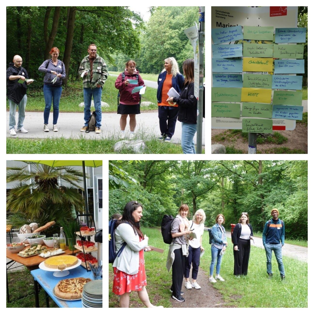 Am 03.06.2025 kamen Fachkräfte von Nürnberger Kindertageseinrichtungen und Nürnberger Tagespflegestellen, die derzeit am Unterstützungssystem Pädagogische Qualitätsbegleitung (PQB) teilnehmen bzw. bereits teilgenommen haben, zum neunten Netzwerktag zusammen. Im Rahmen eines gemeinsamen Walk’n Talk im Nürnberger Marienbergpark diskutierten sie das Thema „Wie viele unterschiedliche Verhaltensweisen passen in den pädagogischen Alltag?“ Dabei teilten die Teilnehmer*innen untereinander ihre Erfahrungen und Perspektiven im Umgang mit herausfordernden Verhaltensweisen von Kindern, Eltern und Kolleg*innen im pädagogischen Alltag unter dem Aspekt der Kita und der Tagespflegestelle als System. Anhand verschiedener Alltagssituationen und der Frage nach den verschiedenen Ebenen, Möglichkeiten und methodischen Vorgehensweisen wurde die eigene Verantwortung sowie die damit verbundene Selbstwirksamkeit im Umgang damit, herausgearbeitet und diskutiert. Außerdem konnten sie die Möglichkeit nutzen, gegenseitig von ihren Erfahrungen und pädagogischen Expertisen zu profitieren und dadurch Anregungen für die praktische Umsetzung vor Ort mit in die Kita-Teams und Tagespflegestellen zu nehmen. Zum Abschluss fand ein offener Austausch bei einem sommerlichen Buffet in der "Tante Noris im Park" statt. Organisiert wurde der Netzwerktag von den drei Pädagogischen Qualitätsbegleitungen: Birgit Dobrawa, Cornelia Dommer und Raphaela Pöhlmann der Stadt Nürnberg, die städtischen Kitas, Kitas freier Träger und Tagespflegepersonen begleiten. Rückblickend waren die persönliche Begegnung und der Fokus auf die Netzwerk-Arbeit für alle sehr bereichernd und effektiv, was durch die positiven Rückmeldungen der Teilnehmenden bestätigt wurde. Wir freuen uns, dieses Format auch in Zukunft beizubehalten, um den Raum zum Netzwerken und für fachlichen Austausch zu ermöglichen. Herzlichen Dank an alle Teilnehmenden für diesen konstruktiven Austausch!