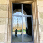 So könnten die Türen aussehen, durch die im Winter 2028 das Publikum die Spielstätte des Staatstheaters Nürnberg in der Kongresshalle betritt. Im Arkadengang wurde eine zweiflügelige Mustertüre eingesetzt. Das Wärmeschutz-3-fach-Glas bietet Energieeffizienz und natürliches Licht. Gleichzeitig erfüllen Planung und Ausführung des Türelements die strengen Anforderungen des Denkmalschutzes: Die Mustertür fügt sich in das historische Ambiente des Arkadengangs ein, ohne das Erscheinungsbild des Gebäudes zu beeinträchtigen.