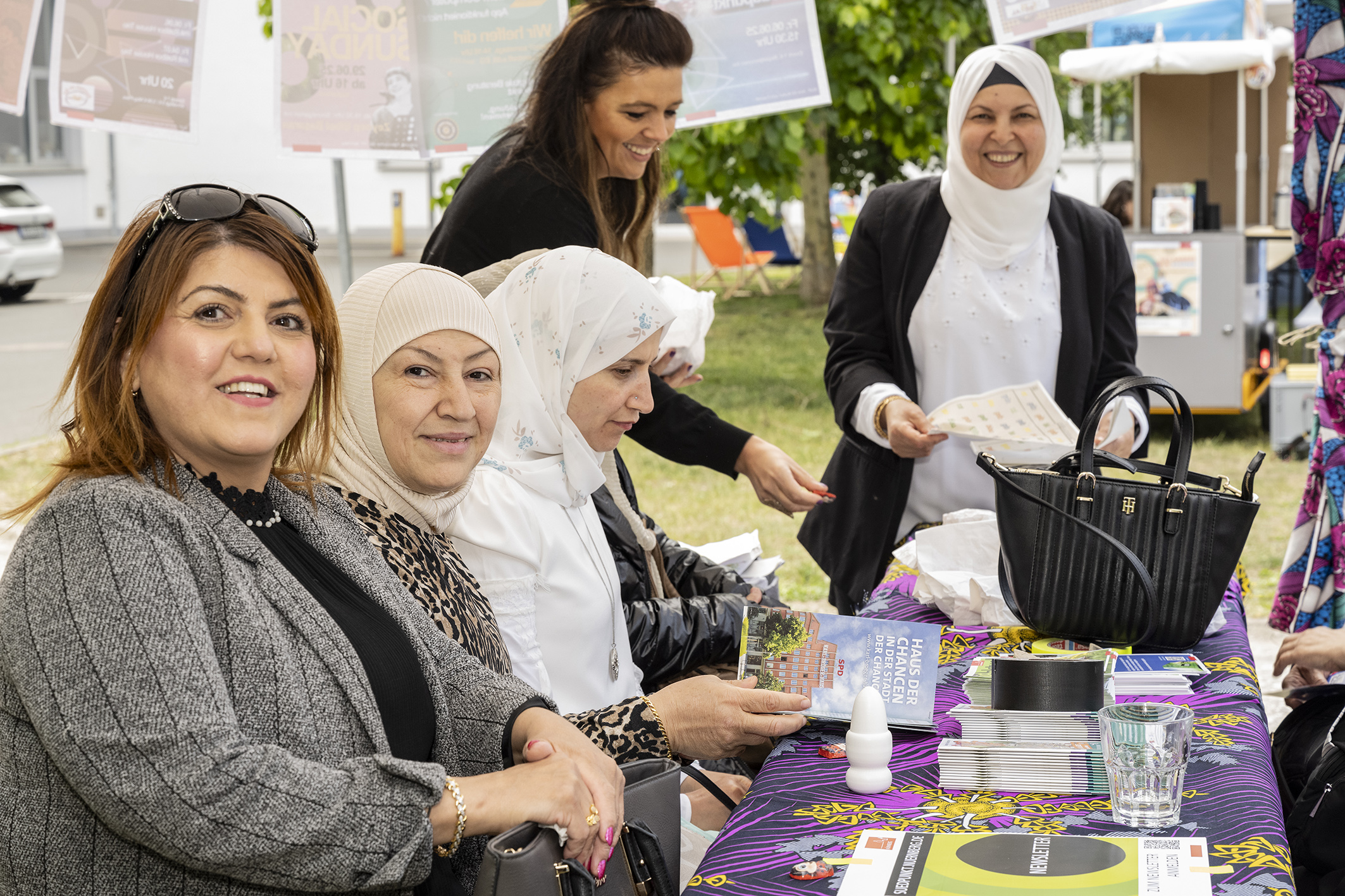 Das Kulturbüro Muggenhof lud zum interkulturellen Buch- und Kleidertausch, beim „Gruß aus Almoshof“ entstanden nostalgische Postkarten. Beschweren? Dies war beim "Meckeramt" von Theater Salzstreuner und der KommVorZone möglich. Wer mochte, konnte auf dem mobilen Begegnungssofa des Gemeinschaftshauses Langwasser Platz nehmen und entspannt ins Gespräch kommen. Beim Kulturladen Röthenbach konnten Bastler*innen die längste Wimpelkette Nürnbergs mitgestalten.