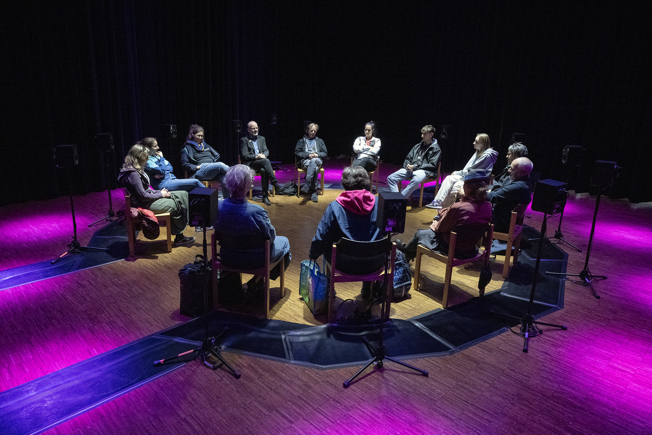Die interaktive Hörinstallation des LOCI-Kollektivs erzählte von einer fiktiven Konferenz: 13 KULAMIs ("Kulturladenmitarbeitende") sitzen im Stuhlkreis und diskutieren über das Programm von „50 Jahre Kulturläden“. Mit Selbstreflexion und Humor entstand ein vielstimmiges Gespräch – bis sich plötzlich eine bekannte Stimme aus der Vergangenheit meldete. Basierend auf Archivmaterial und Interviews verband die Installation Realität mit Fiktion und ludt das Publikum ein, Platz zu nehmen, zuzuhören und mitzumachen.