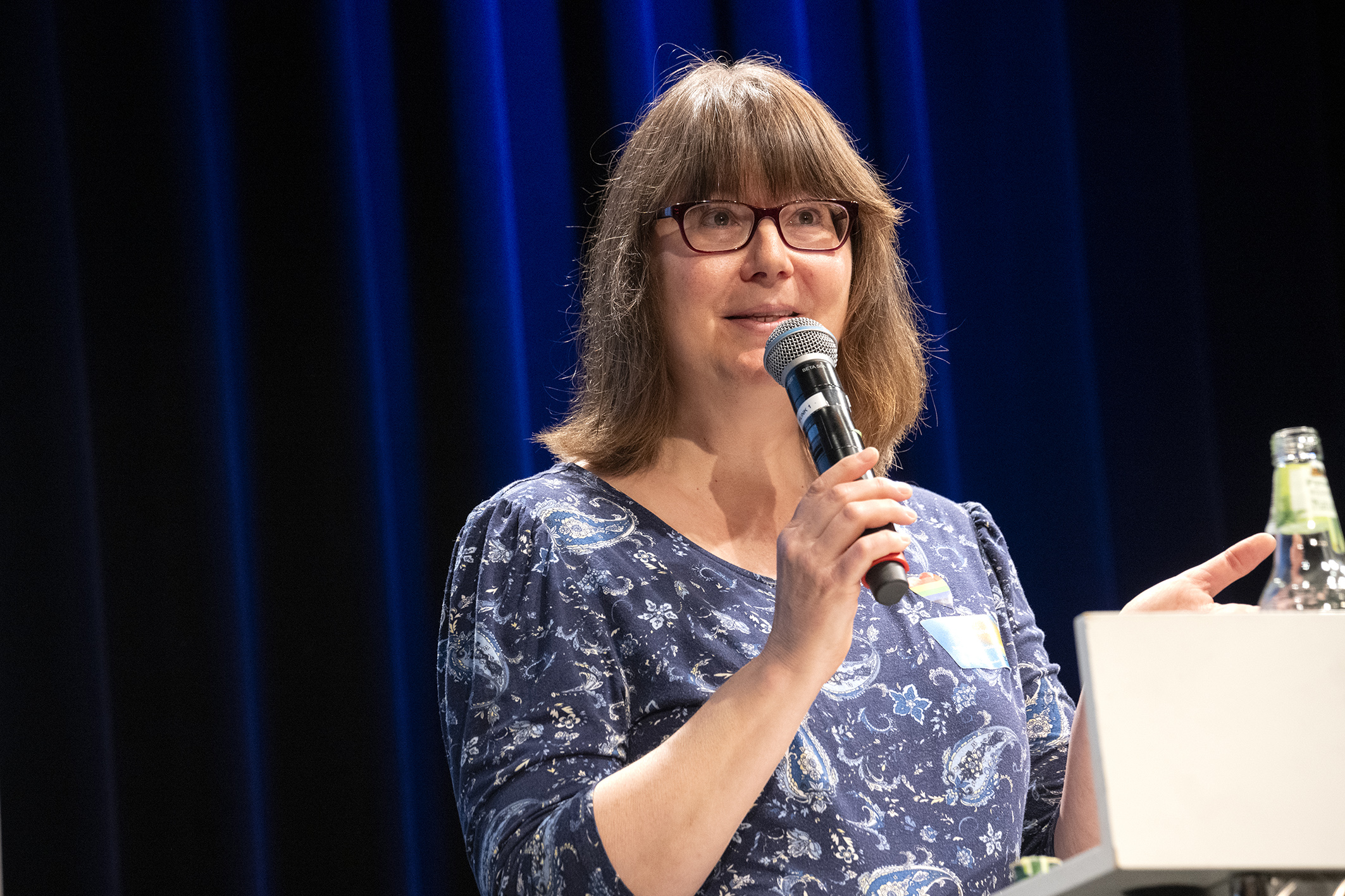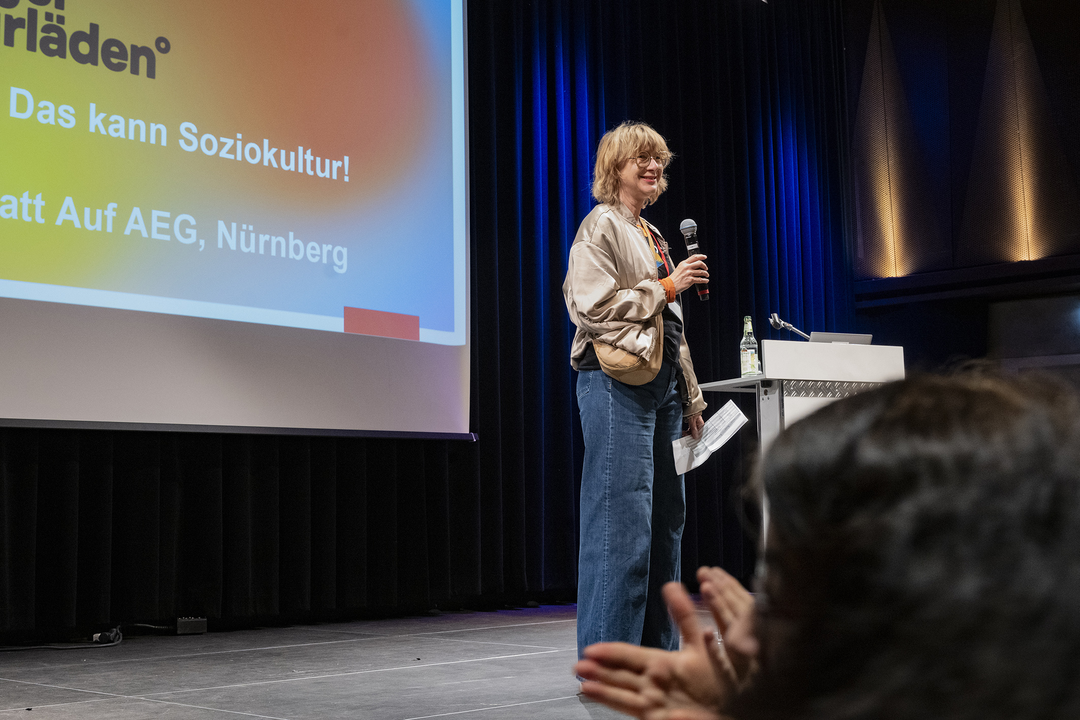 Kristina Rahe, kommissarische Geschäftsführung Bundesverband Soziokultur & Referentin für Demokratiestärkung, referiert über Konzepte, Angebote und Herausforderungen der Soziokultur im Jahr 2025.