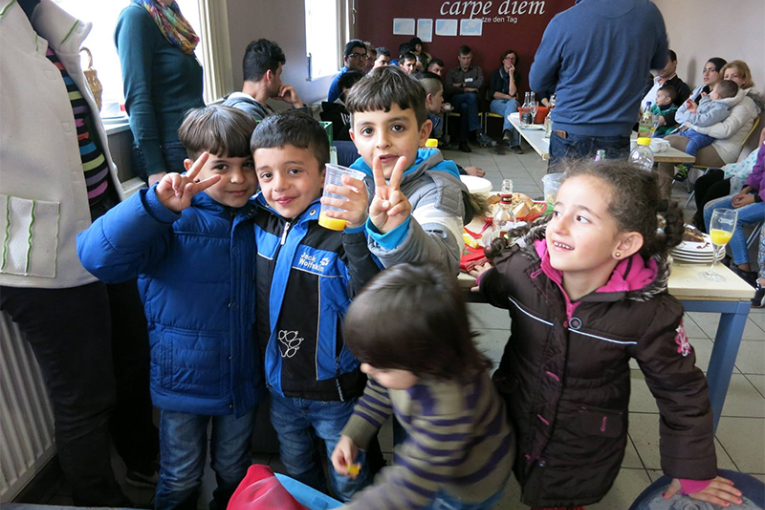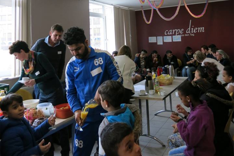 Die ehrenamtlichen Helfer/innen betreuen in unterschiedlichen Teams das Café, das sich an Geflüchtete und Ihre Familien richtet. Es findet an einem Nachmittag zweiwöchentlich in der Paul-Gerhardt-Kirche, gegenüber dem Gemeinschaftshaus Langwasser statt. Die Helfer/innen bringen Kuchen mit, Spiele für die Kinder, basteln gemeinsam mit Jung und alt und kommen so in Kontakt mit den neuen Bewohnern/innen unseres Stadtteils.