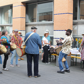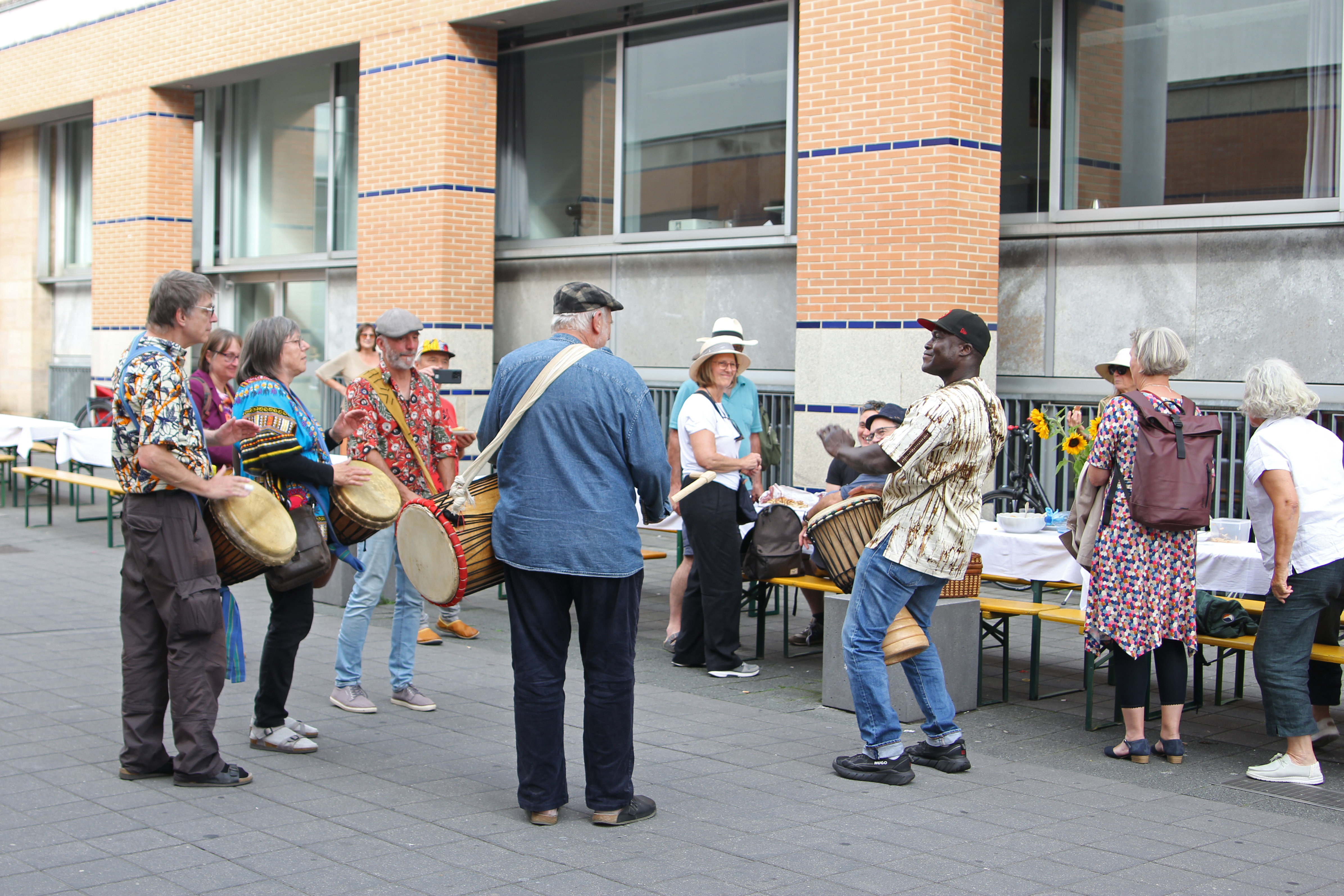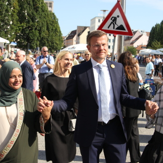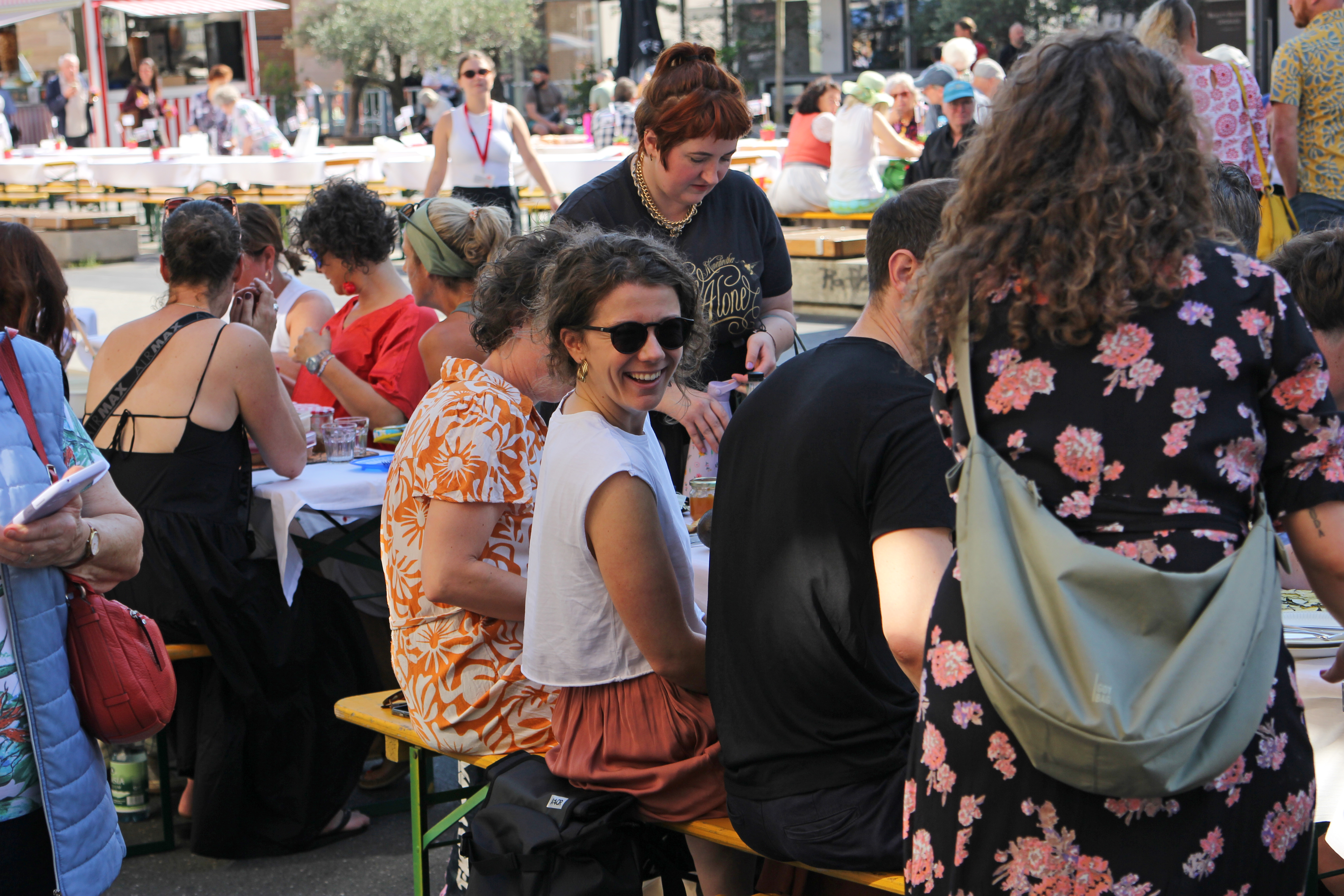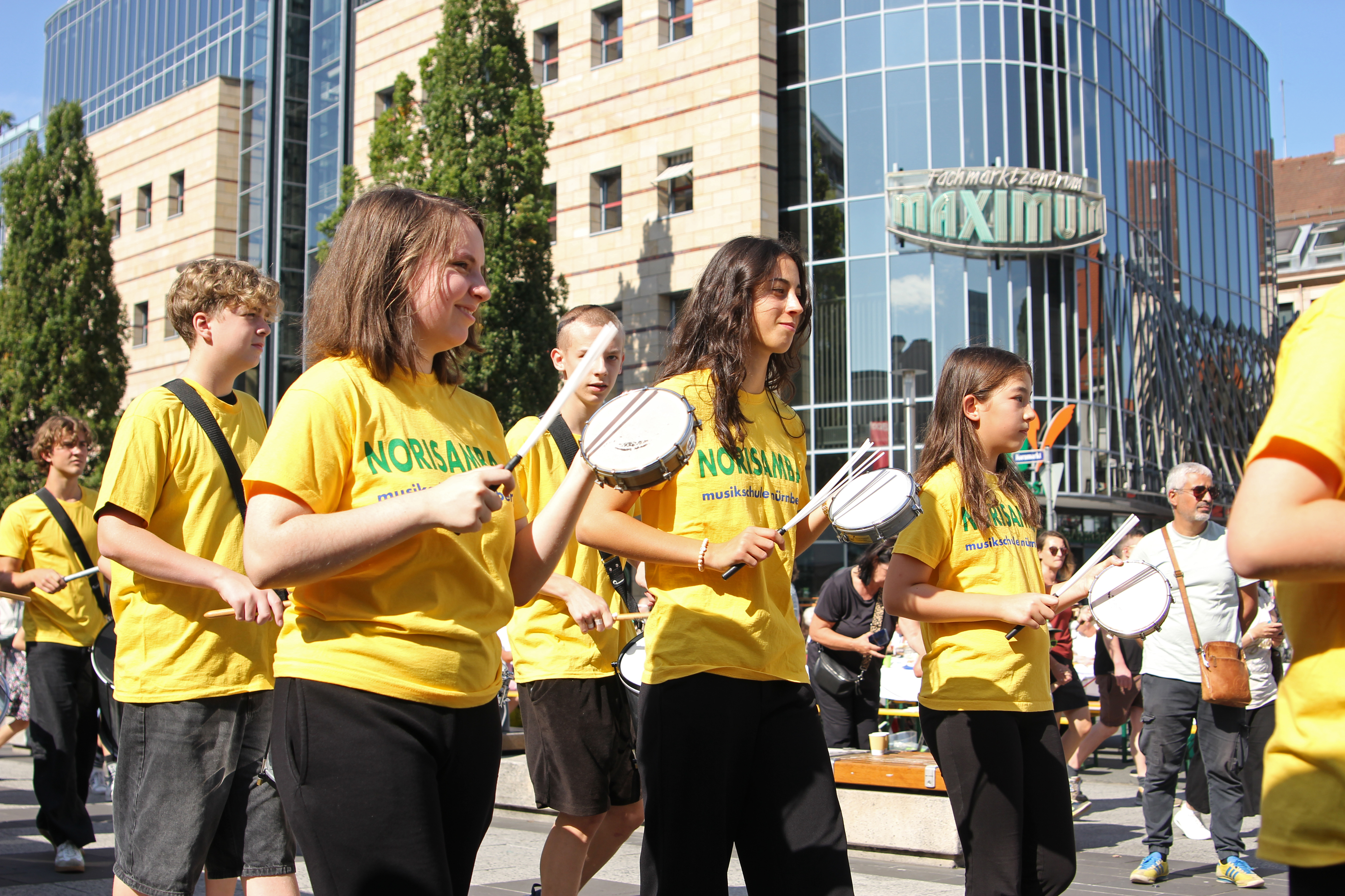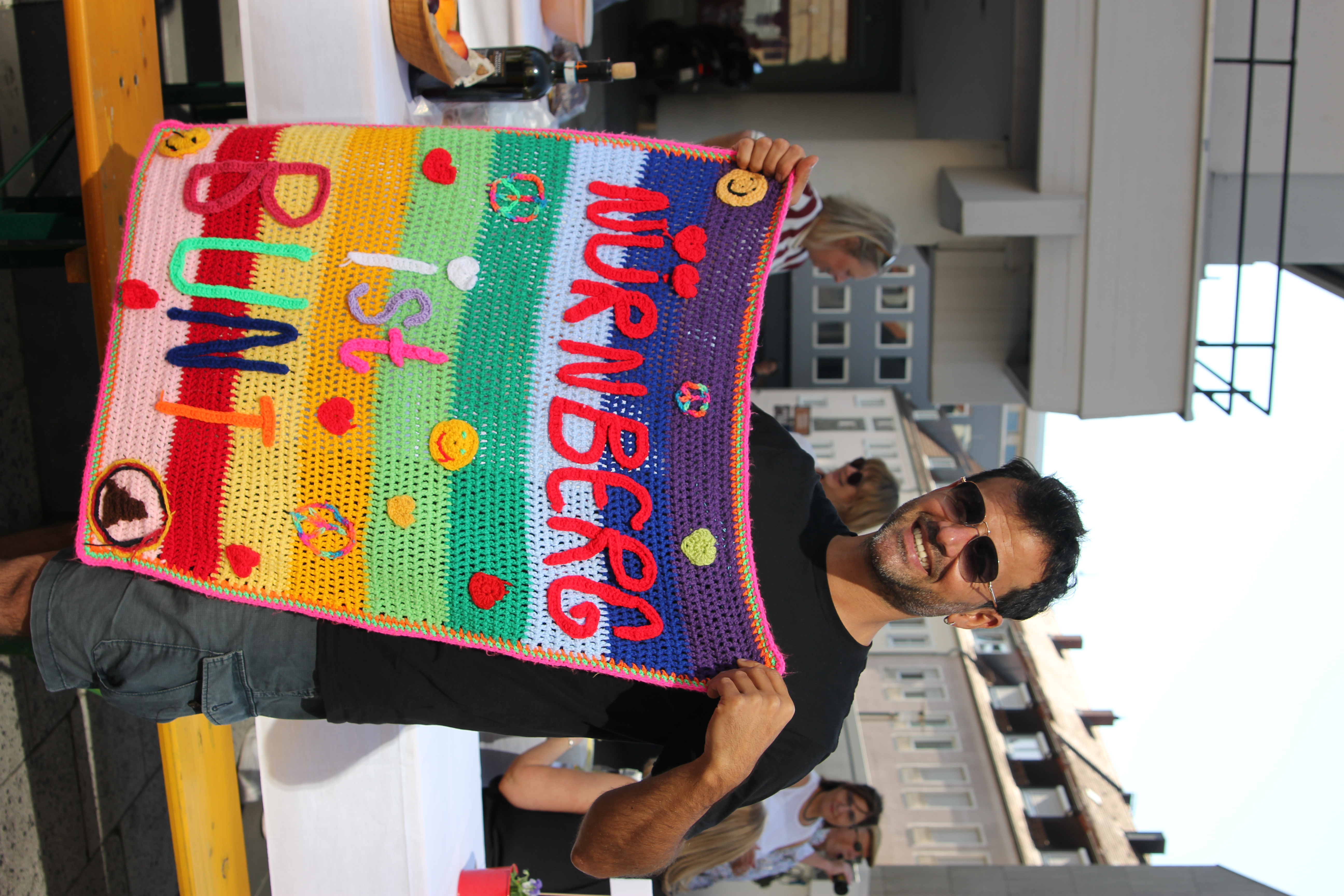Ab 13 Uhr waren alle Bürgerinnen und Bürger eingeladen, an der Nürnberger Friedenstafel teilzunehmen. Man brachte sich die Verpflegung einfach selbst mit oder nutzte das gastronomische Angebot entlang der Tafel. Tische konnten im Vorfeld für 15 Euro reserviert werden.