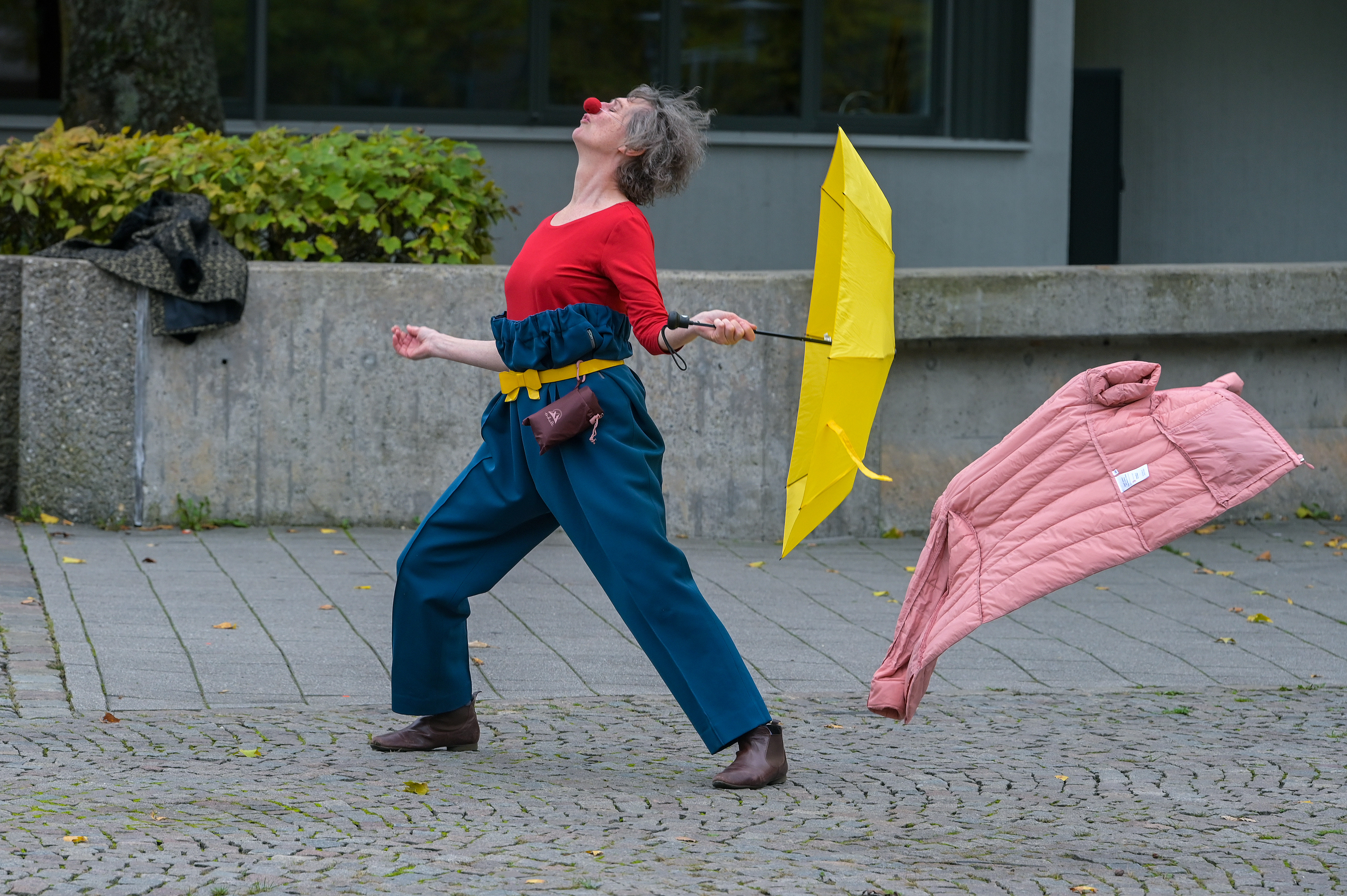 „Die besonderen Eigenschaften des Clowns sind Naivität, Neugier, Mut, Optimismus und Herzlichkeit. Sein Spiel zeichnet die einmalige, meist nonverbale, liebenswerte Kommunikation mit dem Publikum aus. Mit Emotion und körperlichen Ausdruck teilt diese Figur überraschende Erlebnisse und Entdeckungen und lädt mit diesen berührenden Momenten zu Verbindung ein - das kann ein Lächeln, Lachen oder Mitfühlen sein. Er steht für das Menschsein, in alle sich wiederfinden – Perspektivwechsel und (Handlungs-) Spielraum wird möglich.“