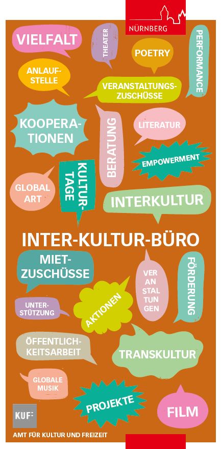Das Inter-Kultur-Büro macht seit vielen Jahren die Vielfalt der Bevölkerung Nürnbergs mittels Veranstaltungen, Projekten und Aktionen sichtbar und greift neue Entwicklungen der diversen Stadtgesellschaft (Transkultur, Diversity und mehr) auf. Mit einer Reihe von Schwerpunktprojekten und Höhepunktveranstaltungen von den "Türkisch-deutschen Literaturtagen" oder dem Musikwettbewerb „creole – Globale Musik aus Bayern“ bis hin zu Spanischen Filmtagen setzt(e) das Inter-Kultur-Büro nachhaltige Kultur-Programmakzente und stößt neue Projekte wie das vom IKB initiierte und begleitete Netzwerk Global Art Nürnberg mit dem u.a. "Global Art Festival" an. Der Veranstaltungskalender für das interkulturelle Nürnberg gibt einen guten Überblick über Veranstaltungen im gesamten Stadtgebiet.