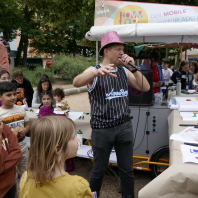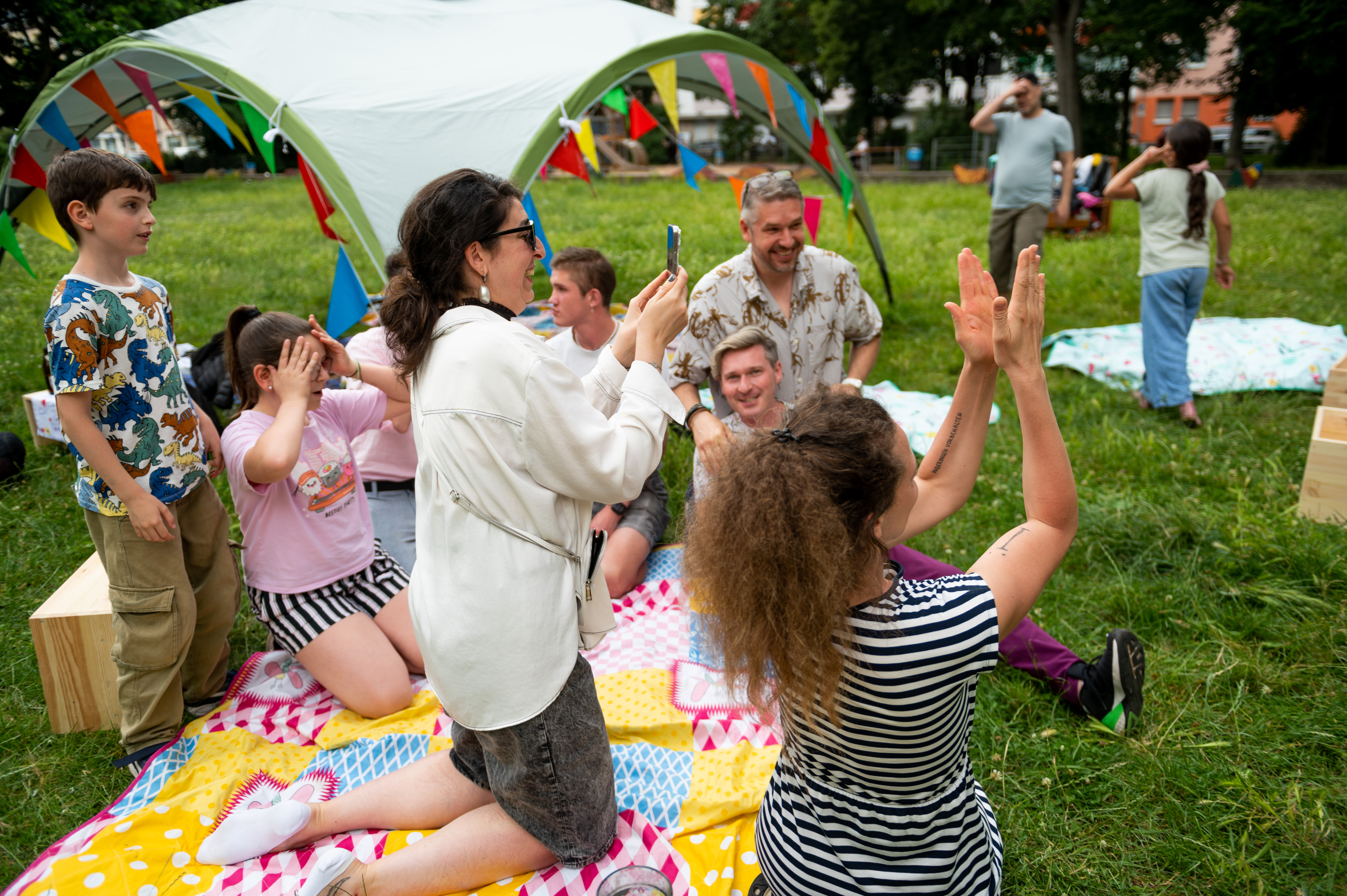 Am 1. Juni war es regnerisch, aber wir konnten fast alles umsetzen: kreative Kinderworkshops mit Outdoor Sommerakademie, eine Yoga-Stunde im Stehen, unsere lustige und zugleich ernsthafte Talkshow, das Zirkus-Theater-Stück und zwei Konzerte. "Fast" - weil das Tisch-Tennis-Tournier doch nicht stattgefunden hat, doch dieses haben wir Anfang August nachgeholt.