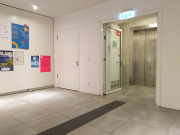 An Zugängen zum Aufzug können die Türen über magnetische Feststellanlagen zum Durchqueren offen gehalten werden. Die Tür muss vom Aufzug aus zu Ihnen hin geöffnet werden. Der Aufzug ist für alle Besucherinnen und Besucher durchgehend zugänglich und bietet Platz für maximal drei Rollstuhlfahrende. Die Kulturwerkstatt Auf AEG verfügt über ein taktiles Leitstreifensystem im Eingangsbereich, Hauptfoyer und Treppenhaus, wodurch in diesem Bereich der Boden teilweise uneben ist.