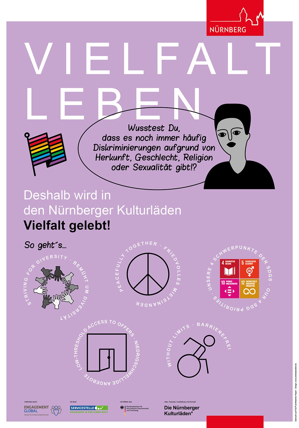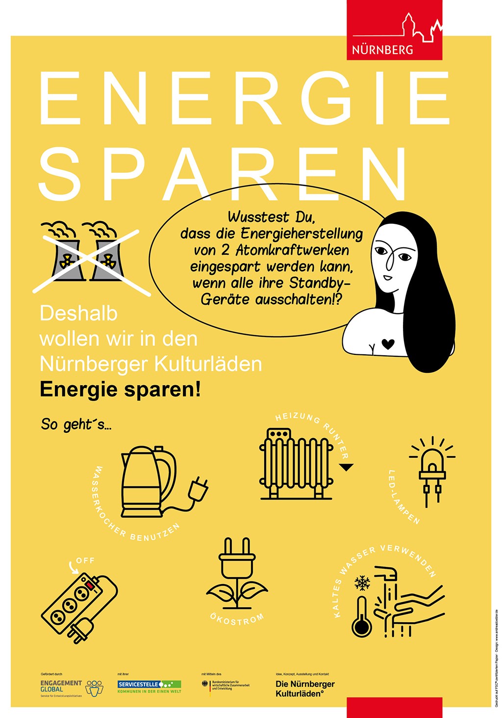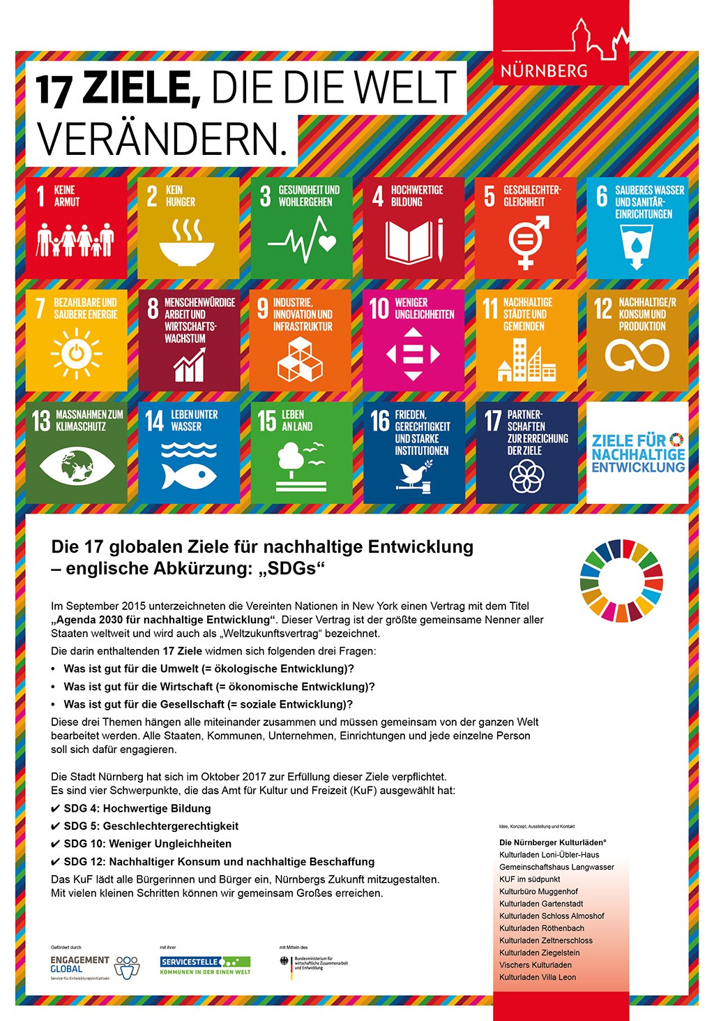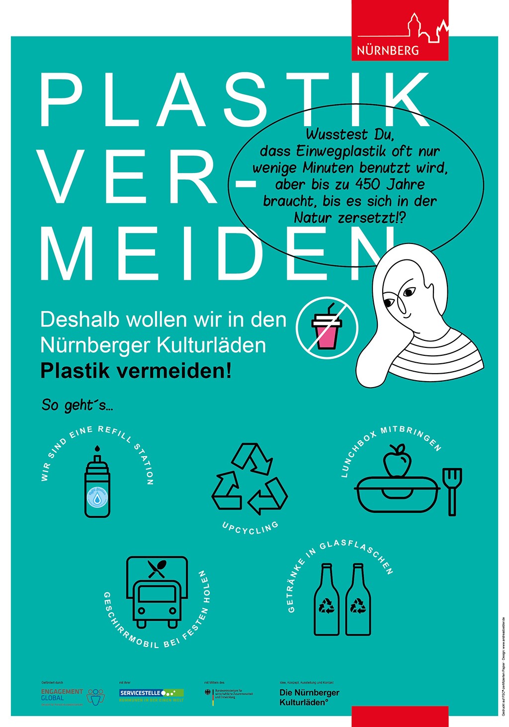 Das Amt für Kultur und Freizeit und somit auch der Kulturladen Villa Leon und die anderen Kulturläden haben sich zur Umsetzungen von Nachhaltigkeitszielen (SDGs) verpflichtet. Neben der Müllvermeidung bei Veranstaltungen, Veranstaltungen zum Themenfeld, Handyaktion Bayern, Refill Station Villa Leon oder unserem Tauschregal, hat der Kulturladen Villa Leon eine Ausstellung mit sieben Tafeln konzipiert, die Möglichkeiten zum nachhaltigen Handeln veranschaulichen. Umgesetzt wurden diese Ideen von Andrea Döbler (Diplom-Designerin (FH).