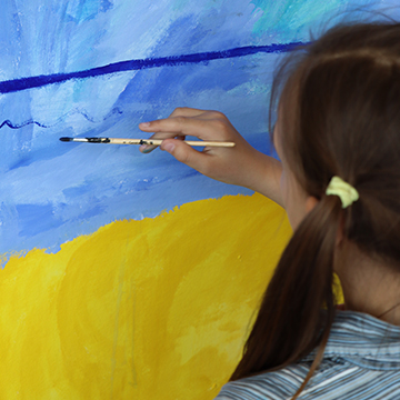 Die Künstlerin Elisaweta Smuschkevic spricht vorwiegend Russisch. Sie stellt jede Woche eine andere Technik vor. Dann gestalten die Kinder frei nach ihren eigenen Ideen. Dabei geht es vor allem um Freude am Tun und an der Begegnung.