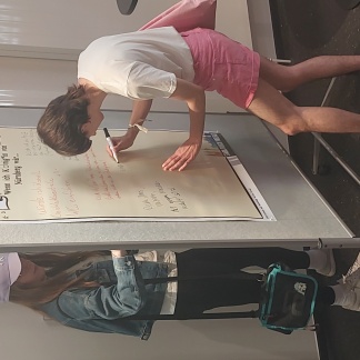 Auch am World-Café-Tisch zum Handlungsfeld „Flucht und Integration“ unter dem Titel „Teilhabe gemeinsam gestalten“ wurden zunächst die spezifischen Bedarfe von LSBTIQ*-Personen mit Fluchthintergrund benannt. Ähnlich wie bei Thema Inklusion wurde von Diskriminierung bis hin zur Unsichtbarkeit alles benannt. Die Teilnehmenden diskutierten zum Beispiel, wie Schutzräume, die medizinische Versorgung sowie die Sichtbarkeit von LSBTIQ*-Geflüchteten gestärkt werden können. Dabei wurde unter anderem deutlich, dass eine Sensibilisierung und Qualifizierung von Fachkräften weiter dringend erforderlich sind, um Teilhabe als wechselseitigen Prozess gemeinsam gestalten zu können.