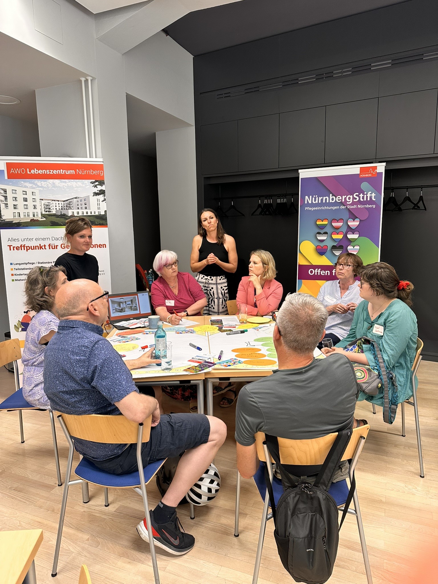 Sichtbarkeit schafft Sicherheit, dies war viele Jahre das Credo der Nürnberger Polit-Dragqueen Uschi Unsinn, die 2022 überraschend verstarb. Queere Sichtbarkeit leistet einen großen Beitrag zur Sicherheit bzw. zu Zugehörigkeit. Queeres Leben als selbstverständlicher Bestandteil der Nürnberger Stadtgesellschaft. Mittlerweile gibt es in Nürnberg einen Regenbogenzebrastreifen, die Beflaggung von Bahnen und Bussen mit Regenbogenfahnen zu den PRIDE-Weeks, aber auch an städtischen Gebäuden zu verschiedenen Gedenktagen und die selbstverständliche Teilnahme des Oberbürgermeisters und/oder Vertreter*innen der Stadtspitze an Veranstaltungen der queeren Community. Beim World-Café Tisch wurde diese Positionierung der Stadt als weiterhin notwendig und wertschätzend rückgemeldet. Bedarfe vor allem hinsichtlich eines verbesserten Schutzes gegen Bedrohungen und Gewalt benannt. Hier stehen gemeinsame Maßnahmen mit der Polizei und weiteren Anlaufstellen im Vordergrund, auch eine Kampagne für die Community, sich bei Vorfällen Unterstützung zu holen und die Schulung des kommunalen Außendiensts wurden benannt.