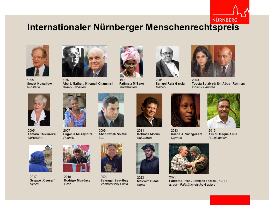 Die Jury ehrt die Organisation Parents Circle – Families Forum (PCFF), die selbst in schwierigsten Zeiten die Kommunikationskanäle zwischen Israelis und Palästinensern offenhält. Obwohl Polarisierung den Dialog oft sinnlos erscheinen lässt, erinnert die Würdigung solcher Bemühungen die Welt daran, dass Fortschritt oft mit kleinen, mutigen Schritten beginnt – durch Neugier auf das Gegenüber.