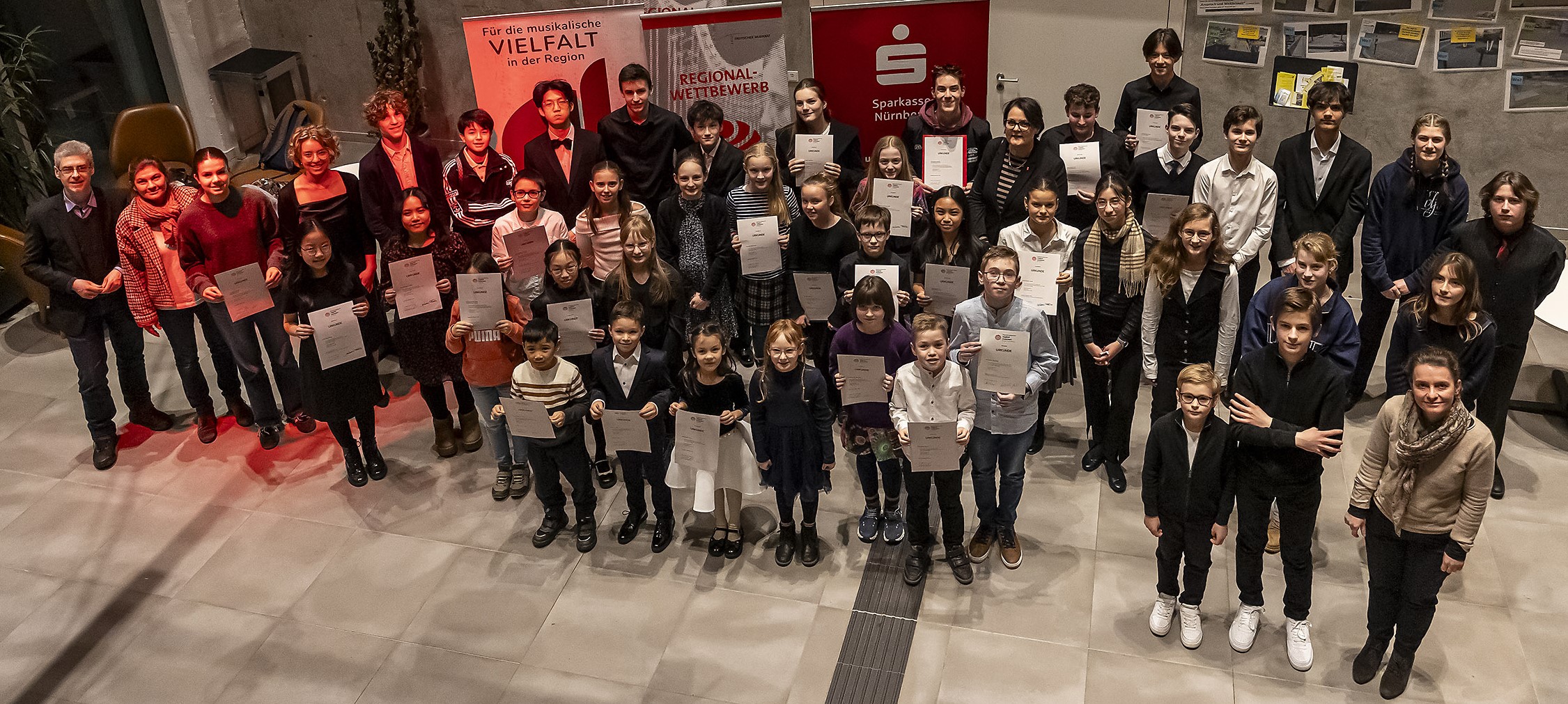 Das festliche Preisträgerkonzert findet am 28. Februar im Großen Saal der Kulturwerkstatt Auf AEG statt. Im Rahmen dieser Veranstaltung werden auch die Sonderpreise der Sparkasse Nürnberg, des Fördervereins zur Unterstützung musikalischer Jugendlicher und der Tonkünstlerverbandes Mittelfranken verliehen. Alle sind herzlich eingeladen. Es werden Ausschnitte aus den Wettbewerbsprogrammen derjenigen Teilnehmer*innen zu hören sein, die eine Weiterleitung zum Landeswettbewerb nach Bamberg bekommen haben.