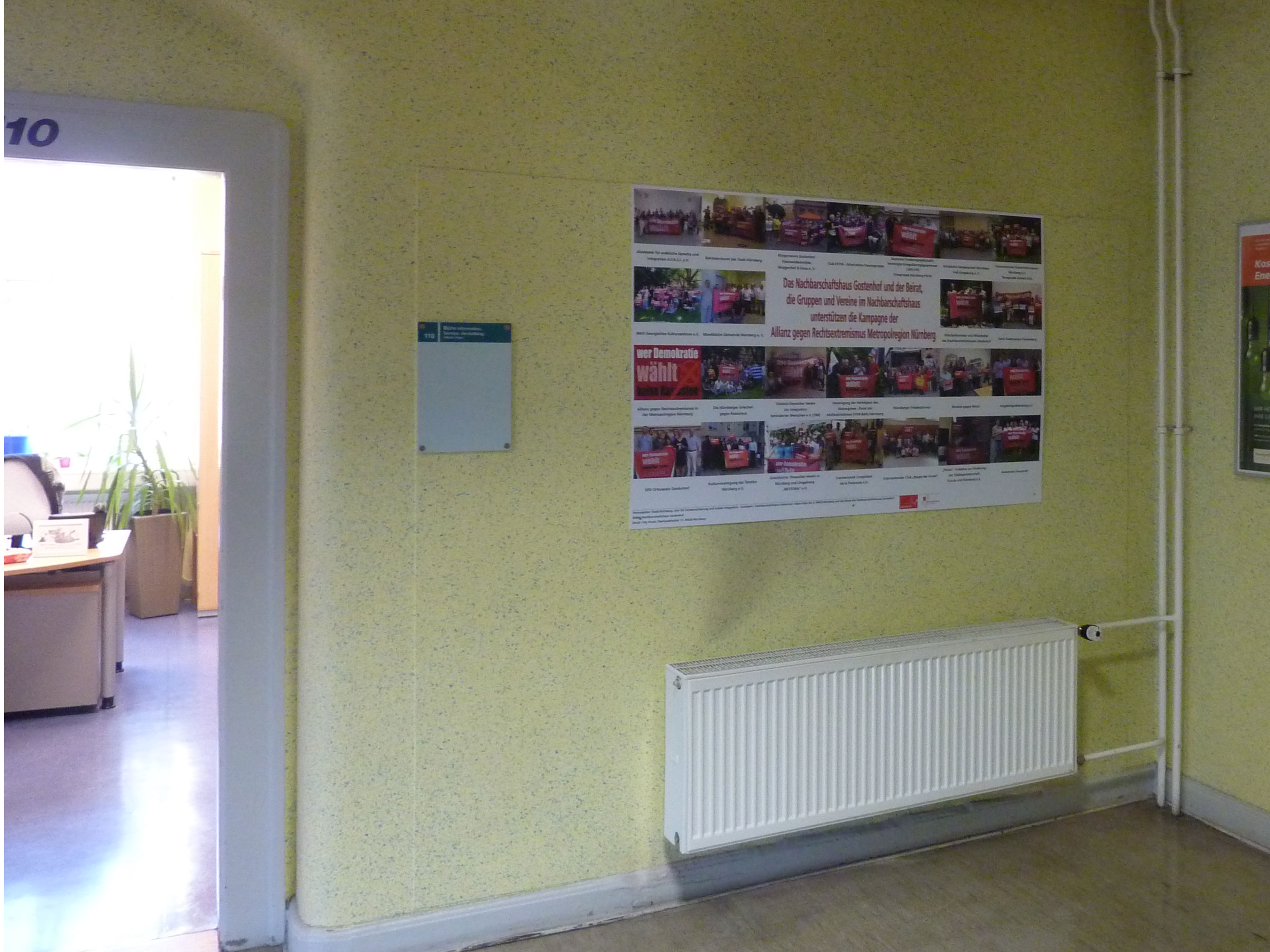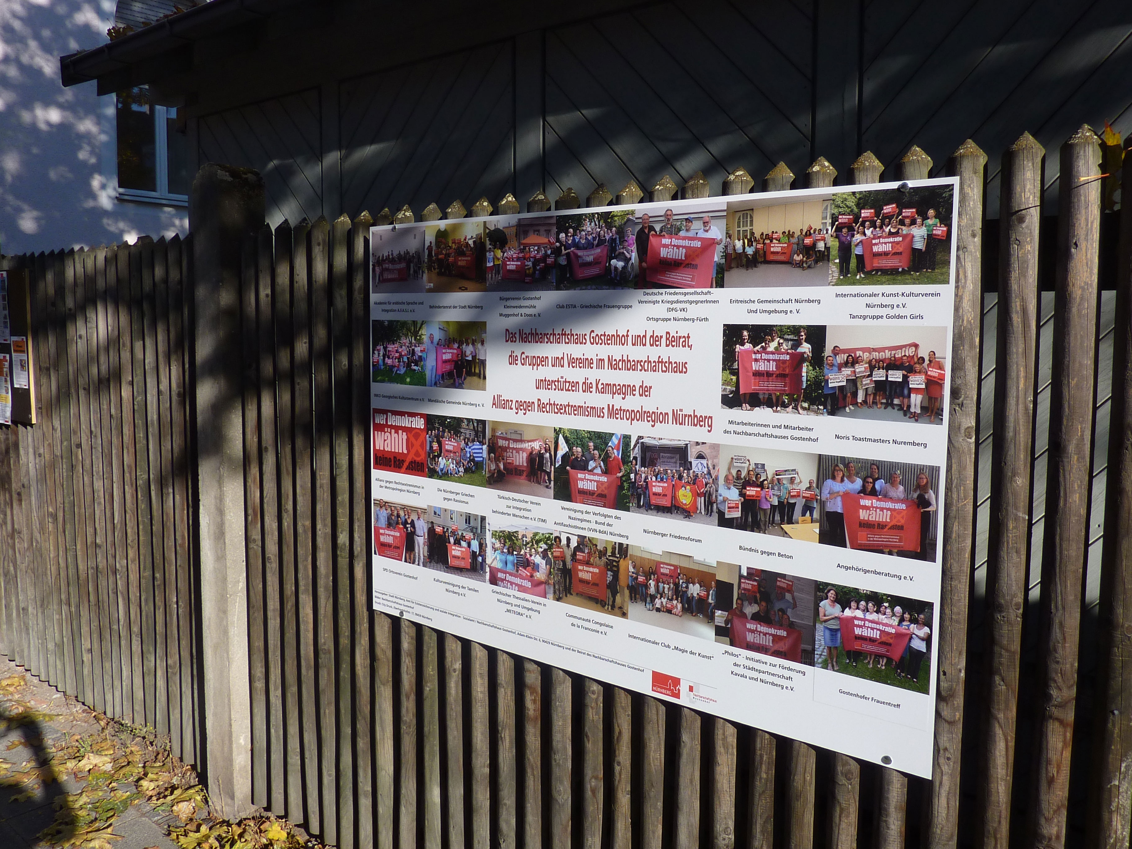 des Nachbarschaftshauses Gostenhof die im Nachbarschaftshaus aktiven Gruppen und Vereine gebeten die Kampagne der Allianz gegen Rechtsextremismus in der Metropolregion Nürnberg „Wer Demokratie wählt, wählt keine Rassisten“ zu unterstützen.