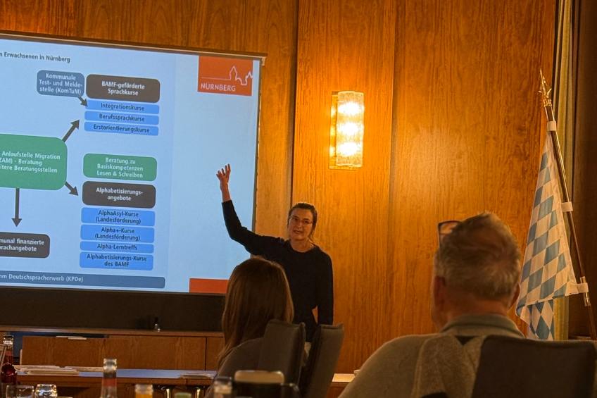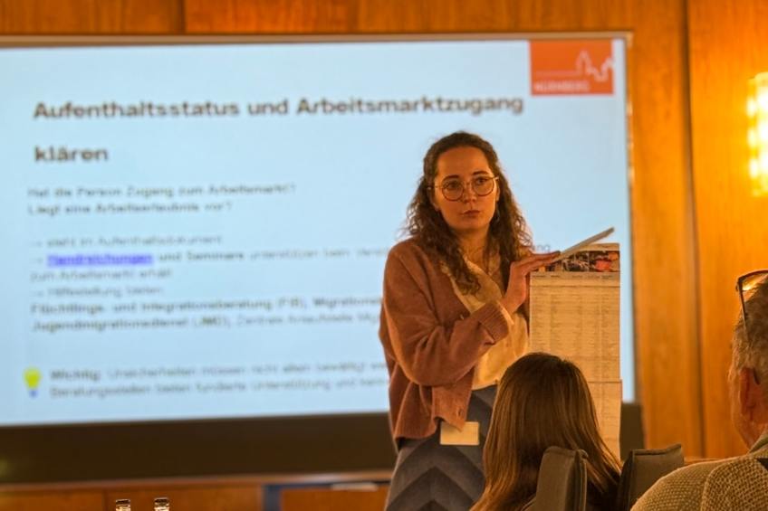 Die Schulung führte Schritt für Schritt durch den Integrationsprozess: von der Klärung des Aufenthaltsstatus über die Einschätzung von Sprachkenntnissen und Qualifikationen bis hin zur nachhaltigen Begleitung in den Beruf. Ein besonderer Fokus lag auf bestehenden Unterstützungsangeboten in Nürnberg und deren praktischer Anwendung.