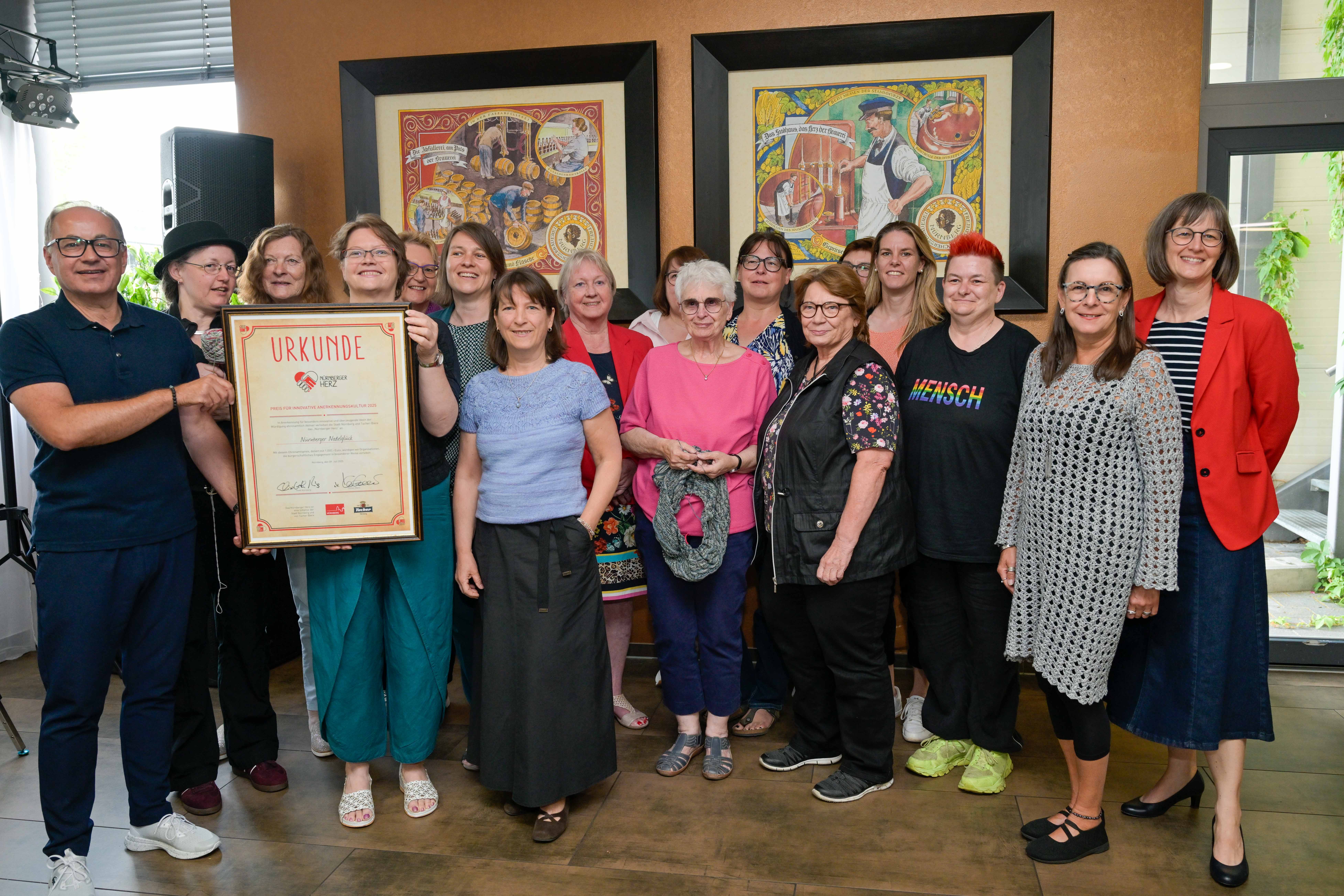 Bei we integrate e.V. – einem gemeinnützigen Integrationsverein – arbeiten 50 Ehrenamtliche u.a. in der Leitung eigener Projekte, unterstützend bei der täglichen administrativen Arbeit, nach ihren Kompetenzen und Interessen daran mit, dass die Diskussion über Rassismus in der Gesellschaft nicht abreißt. Die „Ehris“, wie sie liebevoll genannt werden, können sich mit ihren Kompetenzen in den vier Arbeitsgruppen Öffentlichkeitsarbeit, Website, Veranstaltungen und Ideenwerkstatt einbringen und mitgestalten. Für we eat together wurde der 12. Nürnberger Herz Preis vergeben: „Wir würden gerne ein großes interkulturelles Picknick als Dankeschön für unsere Ehrenamtlichen ausrichten. Wir möchten aber nicht für die Ehrenamtlichen kochen, tatsächlich sollen sie dies alleine tun und das mitgebrachte Essen mit den anderen Ehrenamtlichen teilen. Wir würden gerne für die Getränke und die Kosten für das Essen der Ehrenamtlichen aufkommen, sowie eine Location [im Freien] anmieten. Darüber hinaus müssen wir dann für alle nicht-vollständig Geimpften für die Testkosten aufkommen, wenn diese sich nicht […] impfen lassen können/wollen. Am liebsten wäre uns, wenn wir zum Abschluss noch unseren Film, der im Projekt we film im August über unsere Ehrenamtlichen gedreht wird, über Leinwand zeigen können.“