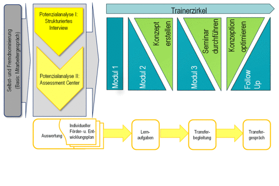 Die Qualifizierung von Trainerinnen und Trainern dient dem Projektantrag folgend der Transfersicherung ausgewählter Qualifizierungsangebote des Gesamtprojektes. Dies insoweit, als dass die Qualifizierungsangebote der ausgebildeten Trainerinnen und Trainern ein verbindliches, auf erfolgskritische Kernkompetenzen gerichtetes Einarbeitungscurriculums bilden werden.