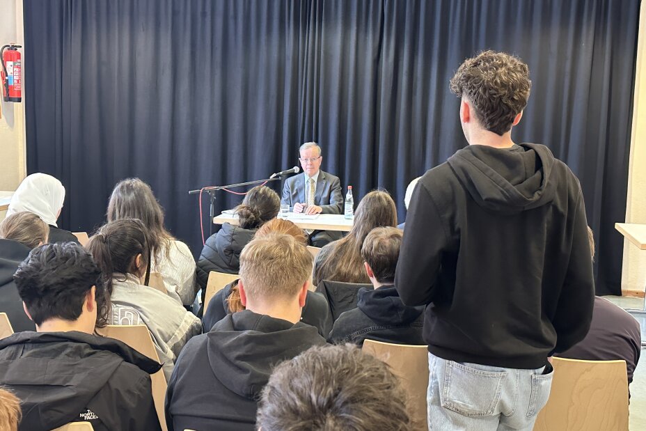 Prof. Henri Ménudier ist ein angesehener Politologe und Experte für die deutsch-französischen Beziehungen. Am 8. Mai 2025, dem 80. Jahrestags des Endes des 2. Weltkriegs, besuchte er die PVS, um vor rund 40 Schülerinnen und Schülern der 11. und 12. Klassen einen Vortrag zur Geschichte und zum aktuellen Stand und der Bedeutung der deutsch-französischen Partnerschaft in Europa zu halten. Die anschließende Diskussion berührte unter anderen die Themen Verteidigung, Finanzen und ein verpflichtendes Dienstjahr für junge Menschen. Vielen Dank für den wiederholten Besuch an der PVS, Herr Prof. Ménudier, und Danke an die Hanns-Seidel-Stiftung für die Organisation und finanzielle Unterstützung!