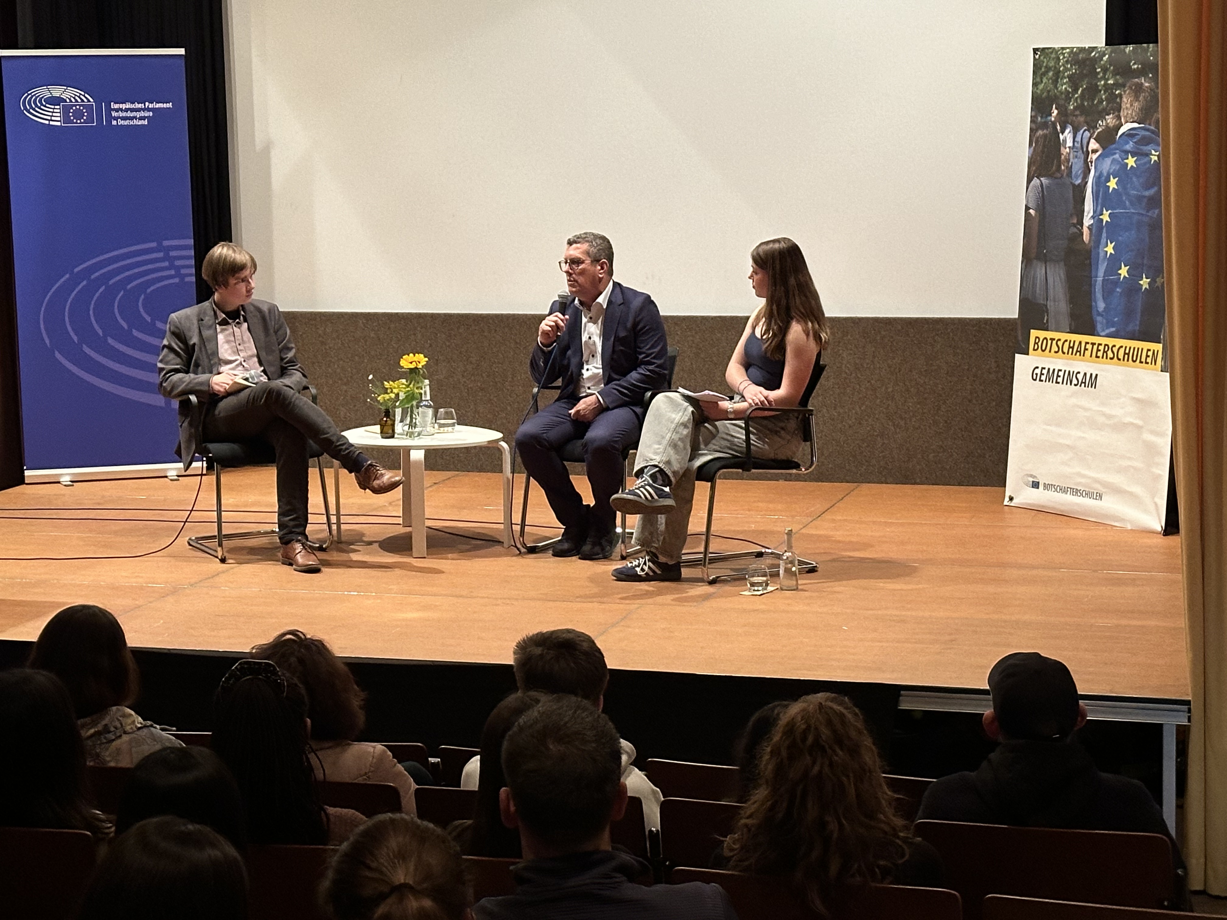 Vier JuBos waren mit ihren zwei SeBos als Abordnung der PVS am 16./17. Oktober bei der EPAS-Tagung von über 30 Botschafterschulen dabei und tauschten sich in Workshops mit ihren Mitstreiter*innen aus ganz Deutschland aus. Aktuelle politische Themen wurden in Arbeitsgruppen und Diskussionsrunden verhandelt, Ideenbörse und Networking waren angesagt. Besonders spannend war die Begegnung mit MdEP Damian Boeselager (VOLT), der sich offen allen Fragen des Plenums stellte.