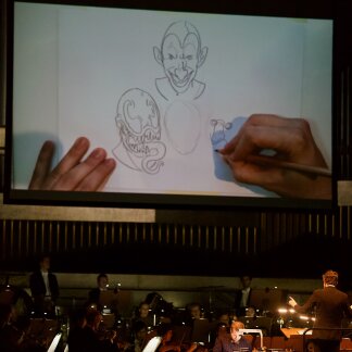 Dasselbe gilt für die Beiträge aus der PVS. Im Foyer gab es Hochkarätiges zu sehen: Das Profilfach Europa (Leitung Petra Döring) ergänzte das Schulevent durch seine Ausstellung und Videoinstallation #PVS_tanzt_EU. Das Vokalensemble begeisterte die Zuhörer mit einer eigens von Michaela Schliederer arrangierten Version von Phil Collins‘ „Tarzan“, und Kunstlehrer Peter Theiss brachte sich hier zum ersten Mal mit ein: Er hatte zu dem Stück die Kulisse für die Großleinwand entworfen. Am Ende setzte er als Solist des Konzerts mit seinen Live-Zeichnungen zu „Spider Man“ und „Jurassic Park“ die umjubelten Höhepunkte der Show.