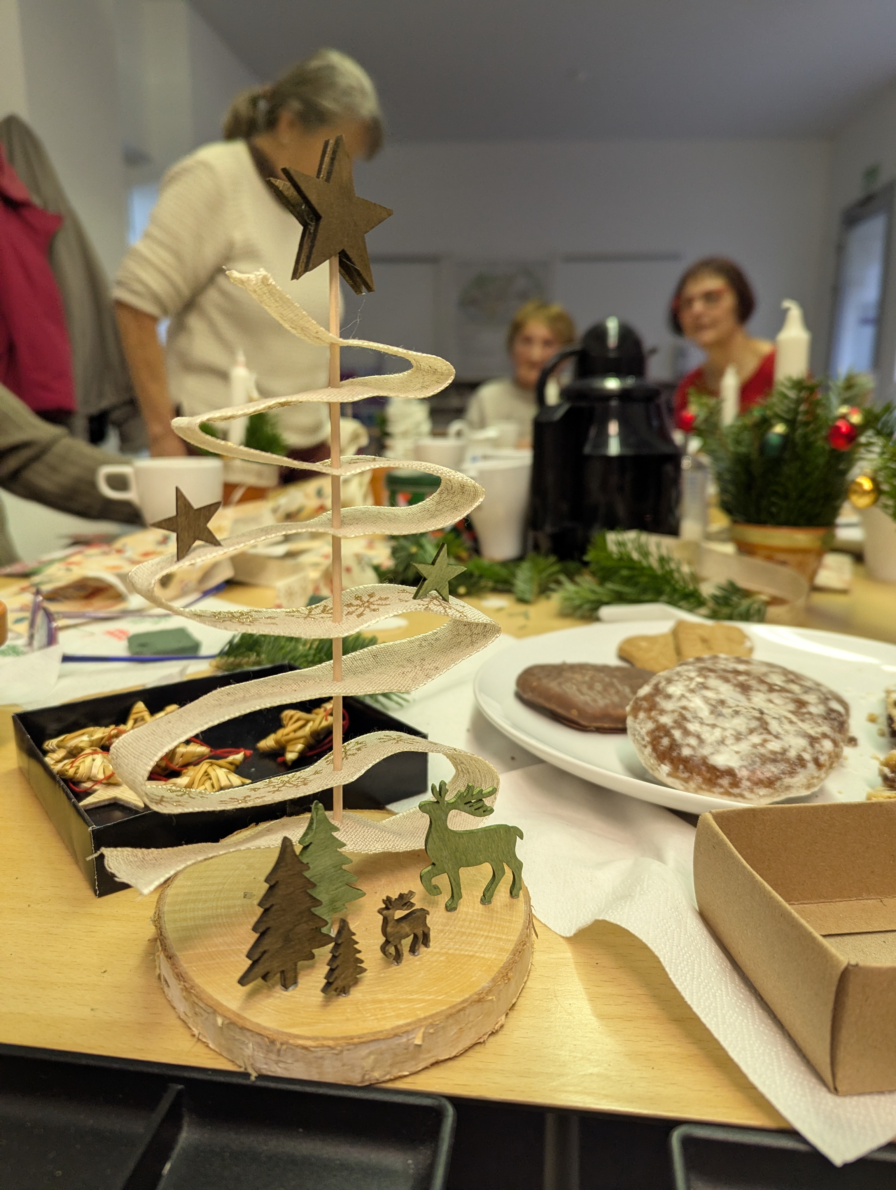 Ende November fand, in Kooperation mit dem SeniorenNetzwerk Altstadt, ein weiterer Bastelnachmittag im Quartiersbüro Altstadt statt. Bei Lebkuchen, Kaffee und Punsch konnten die Teilnehmenden weihnachtliche Deko basteln.