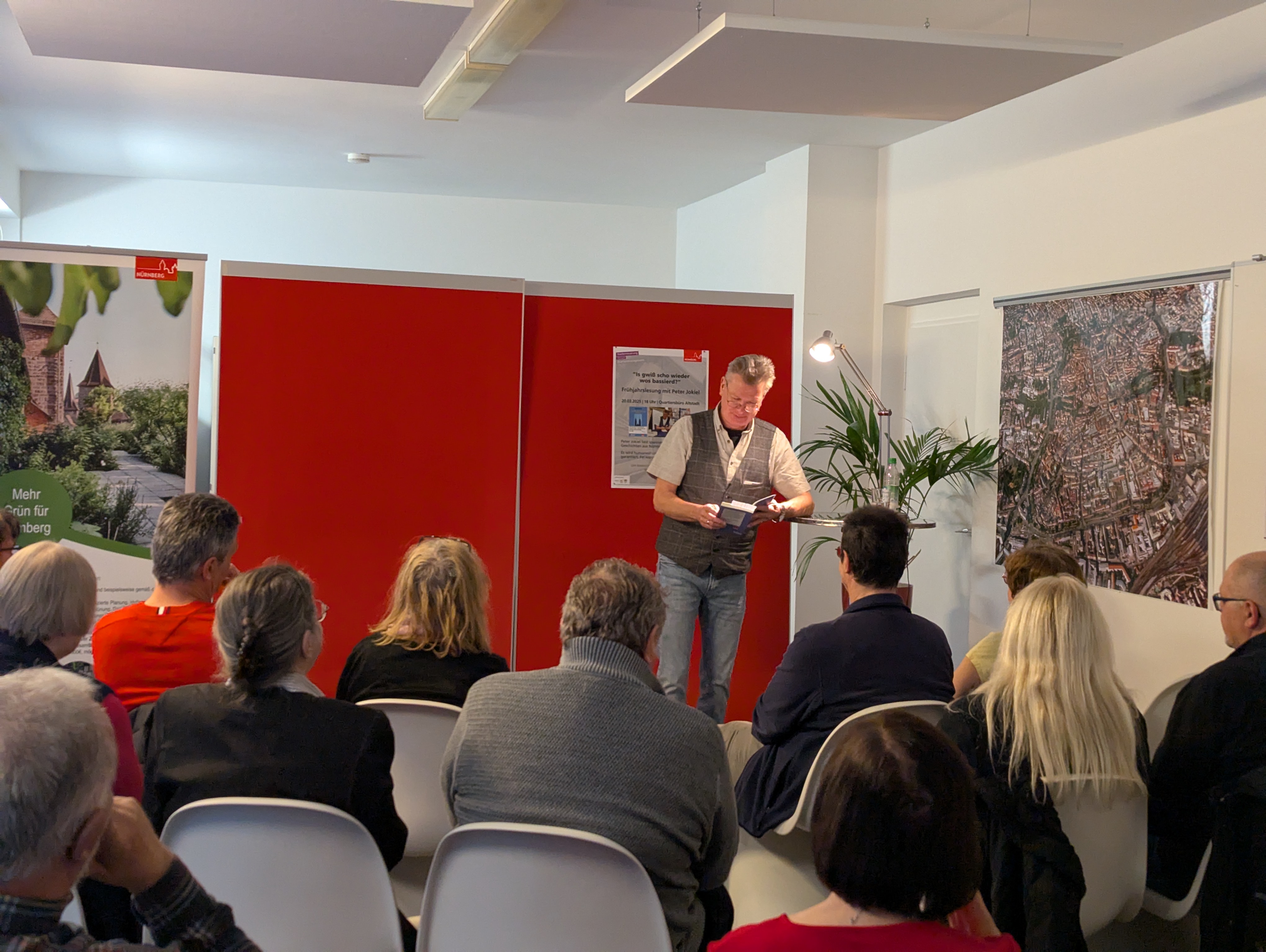 Der Nürnberger Krimiautor Peter Jokiel las im März aus seinem neuen Buch „Is gwiß scho wieder wos bassierd?“ spannende und lustige Geschichten aus Nürnberg, Fürth und Erlangen im Quartiersbüro Altstadt.