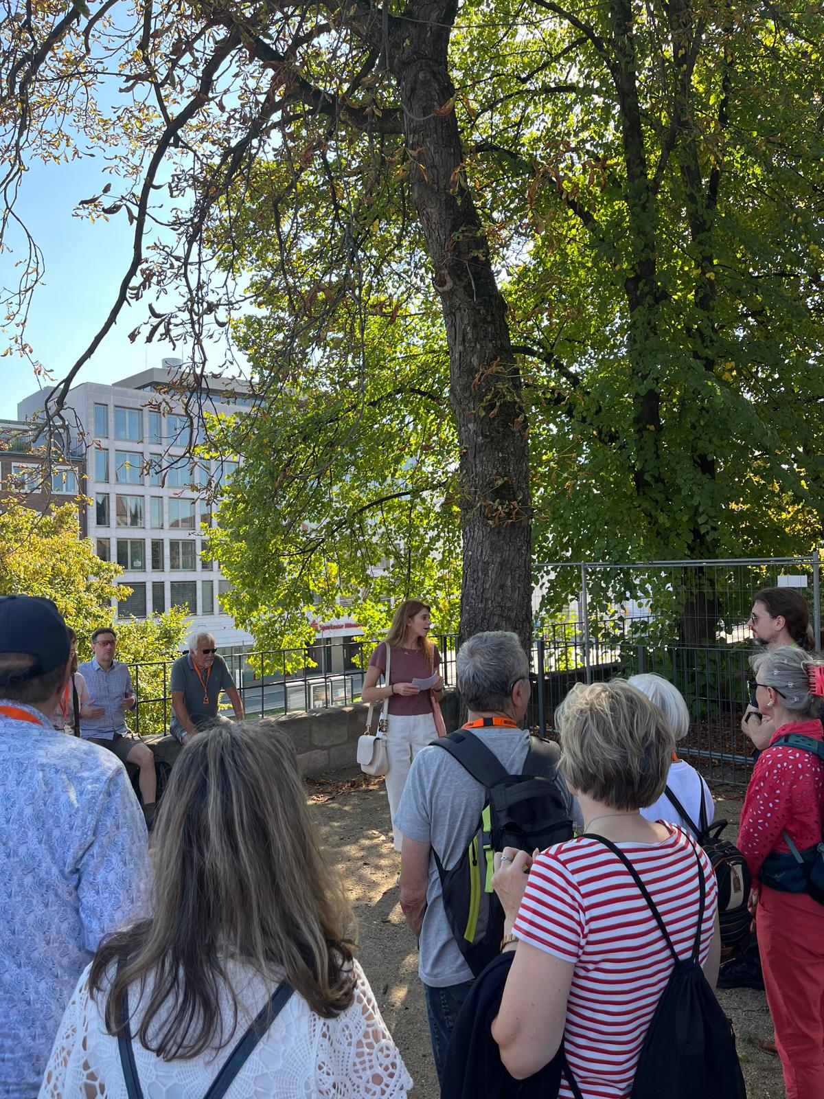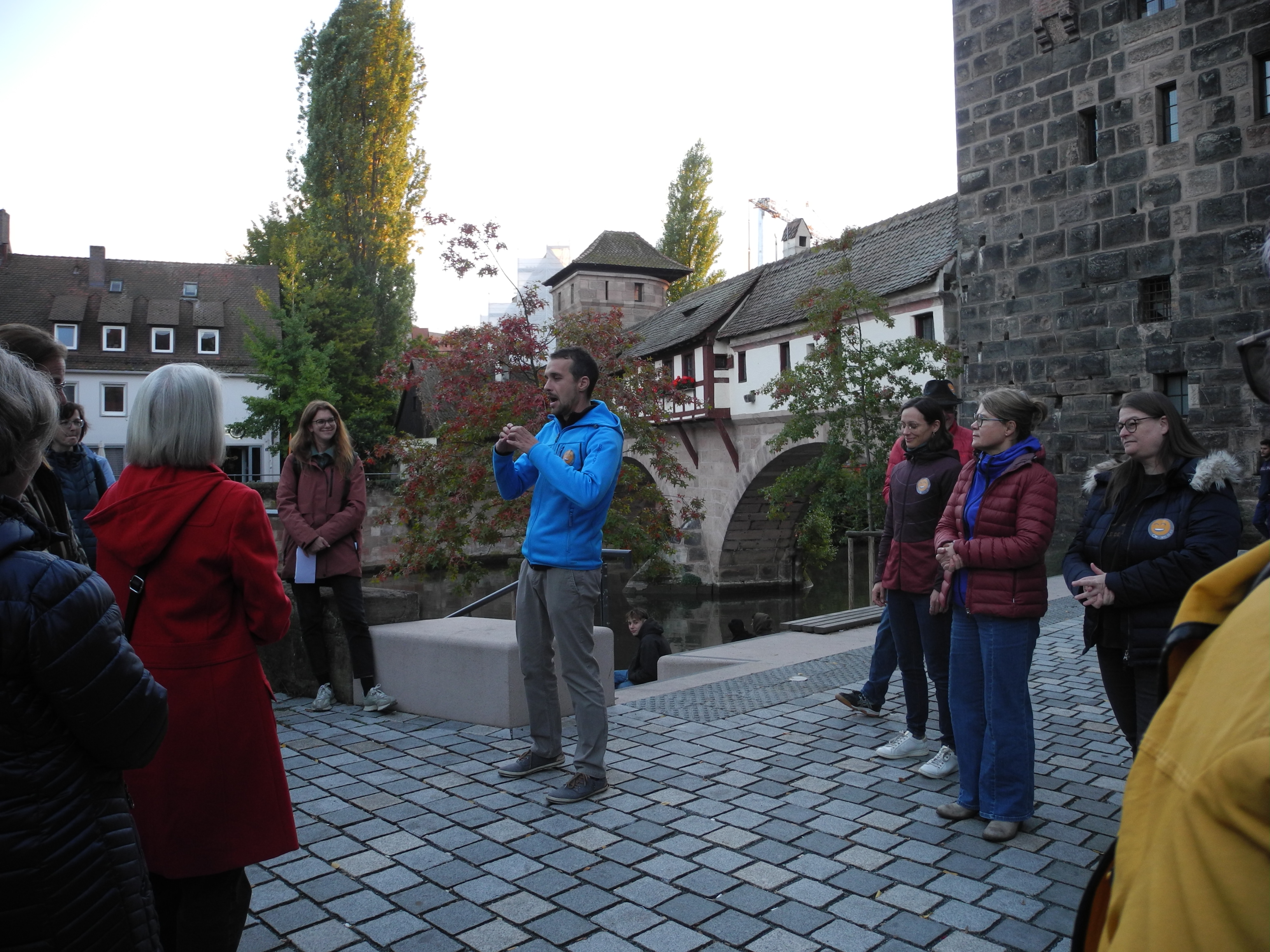 Das Quartiersmanagement Altstadt lud am 16.09.2023 im Rahmen der Stadt(ver)führungen zu einem urbanen Streifzug durch die beiden Stadterneuerungsgebiete Nördliche Altstadt und Altstadt-Süd ein. Die Stadtführerin Carmen Machmuridis-Lösch zeigte den Teilnehmenden, welche Schlüsselmomente der Nürnberger Geschichte sich hinter ausgewählten Projekten der Stadterneuerung verstecken. Ergänzend hierzu gab Quartiersmanagerin Jennifer Ganek Hintergrindinformationen zu den in der Führung thematisierten Stadterneuerungs-Projekten.