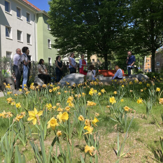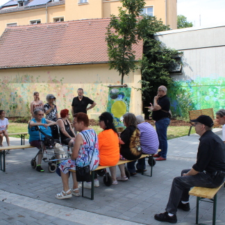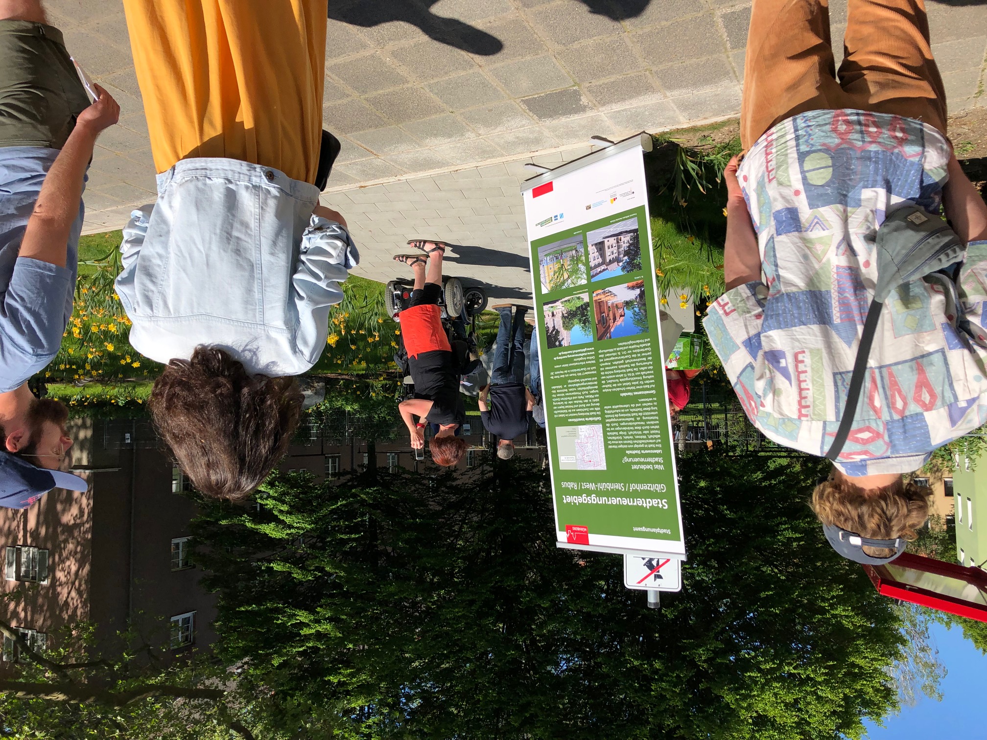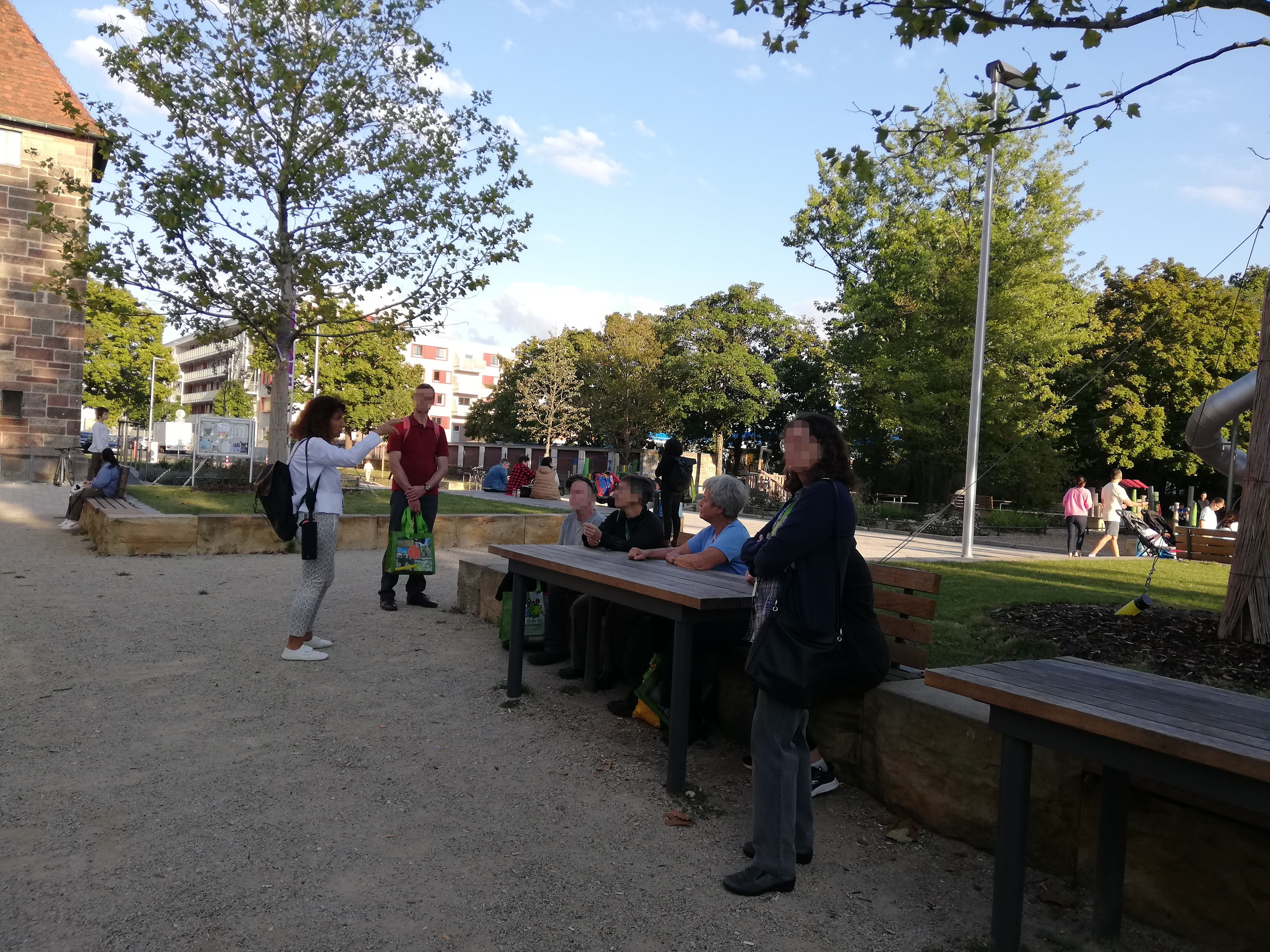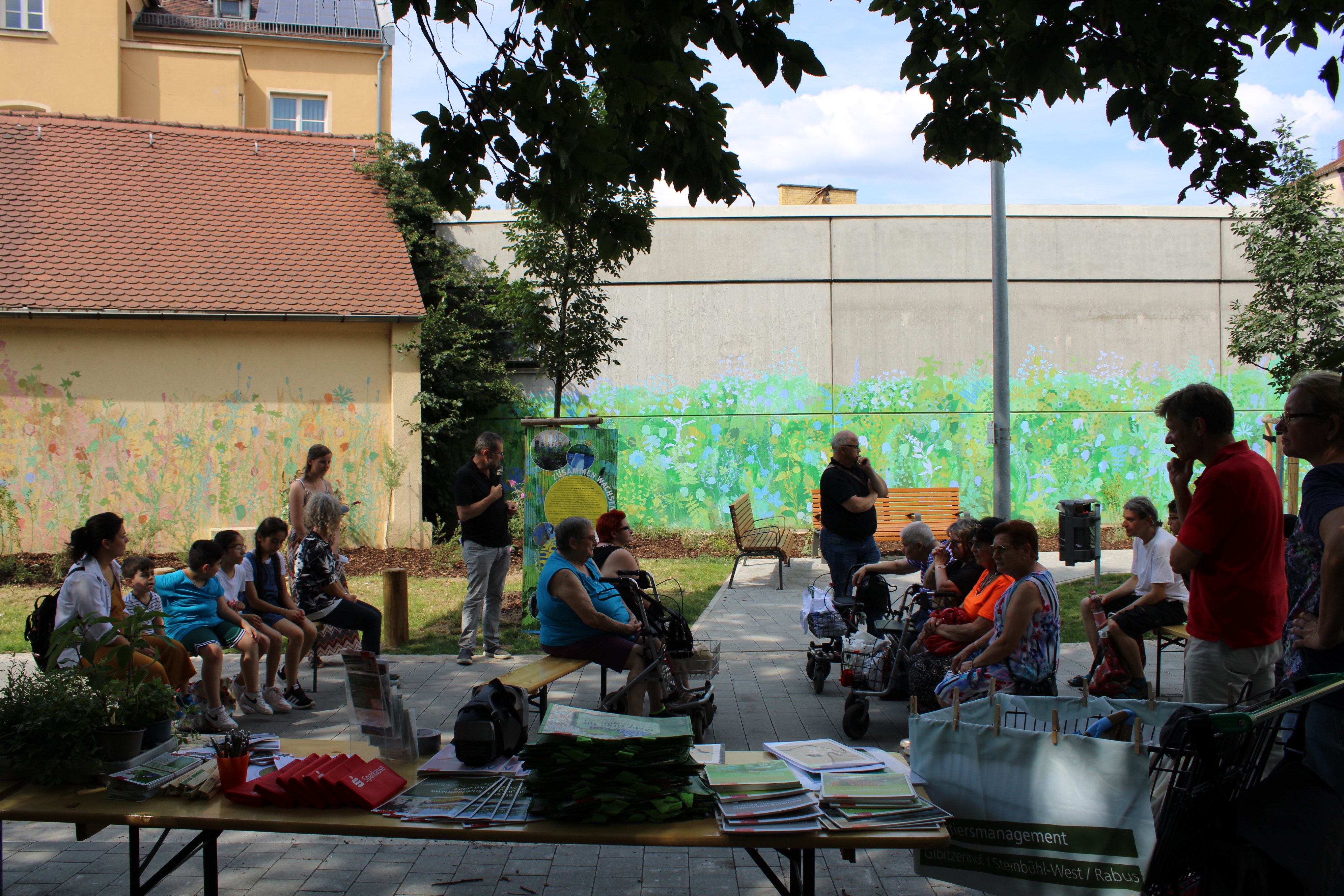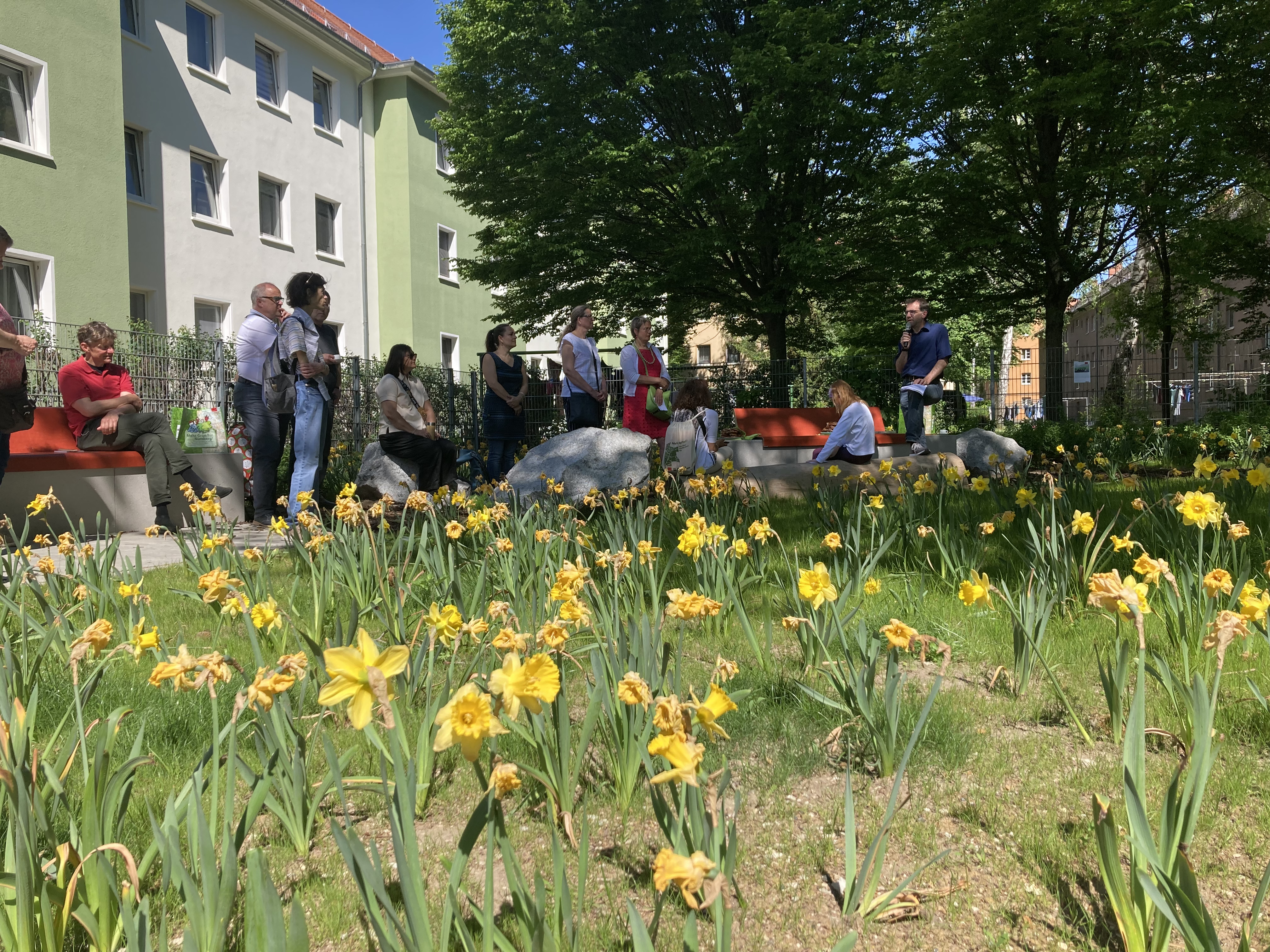 Zusammen mit dem Quartiersmanagement fand zum Tag der Städtebauförderung 2022 ein Spaziergang zu verschiedenen Highlights in Gibitzenhof statt: Er führte von der neu gestalteten Brandwand des Wendehammers in der Max-Planck-Straße über den Dr. Luppe-Platz bis hin zur Grünfläche in der Ludwigshafener Straße. Der neue Pocket-Park wurde durch Herrn Daniel F. Ulrich, Planungs- und Baureferent der Stadt Nürnberg, vorgestellt.