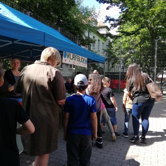 Zusammen mit dem Quartiersmanagement Gibitzenhof/Steinbühl-West/Rabus organisierte die bildende Künstlerin Jeanett Mayer und die ReWolluzzer Frankens eine Außenaktion am Dr. Luppe Platz.