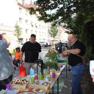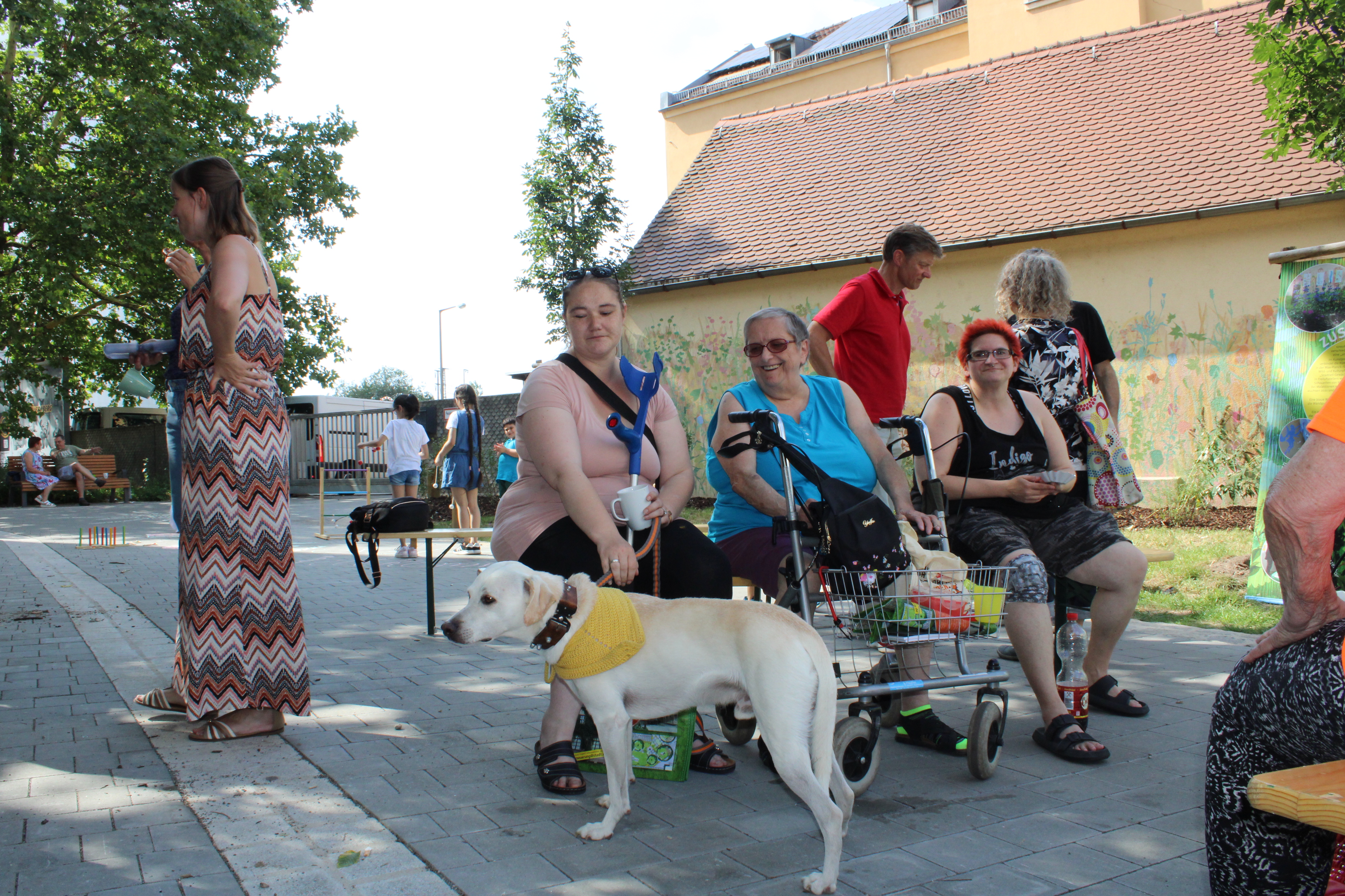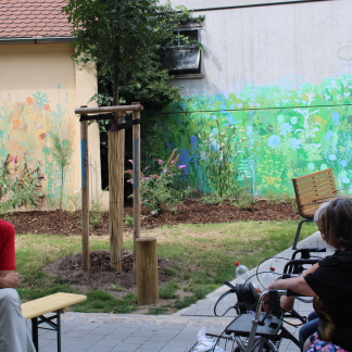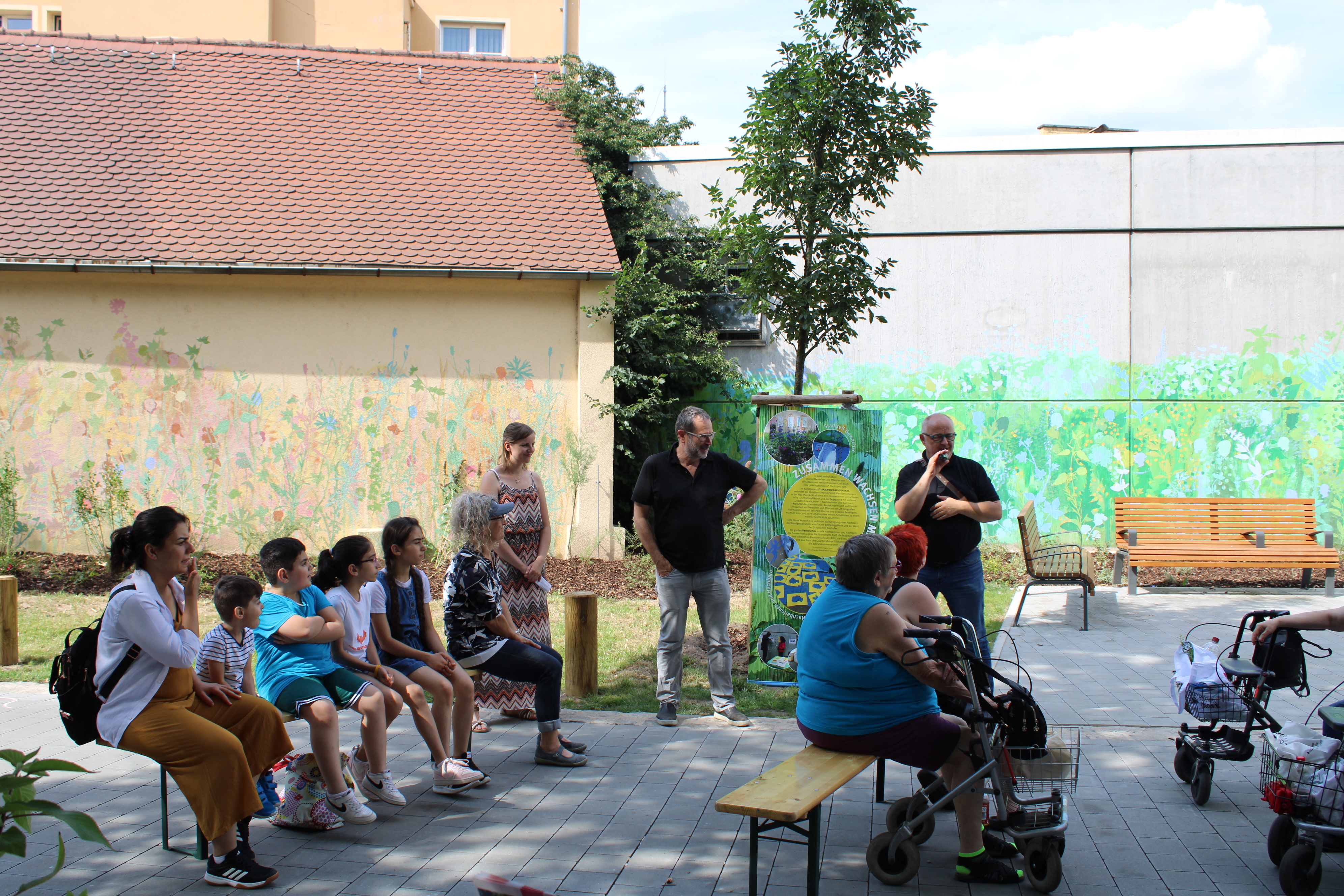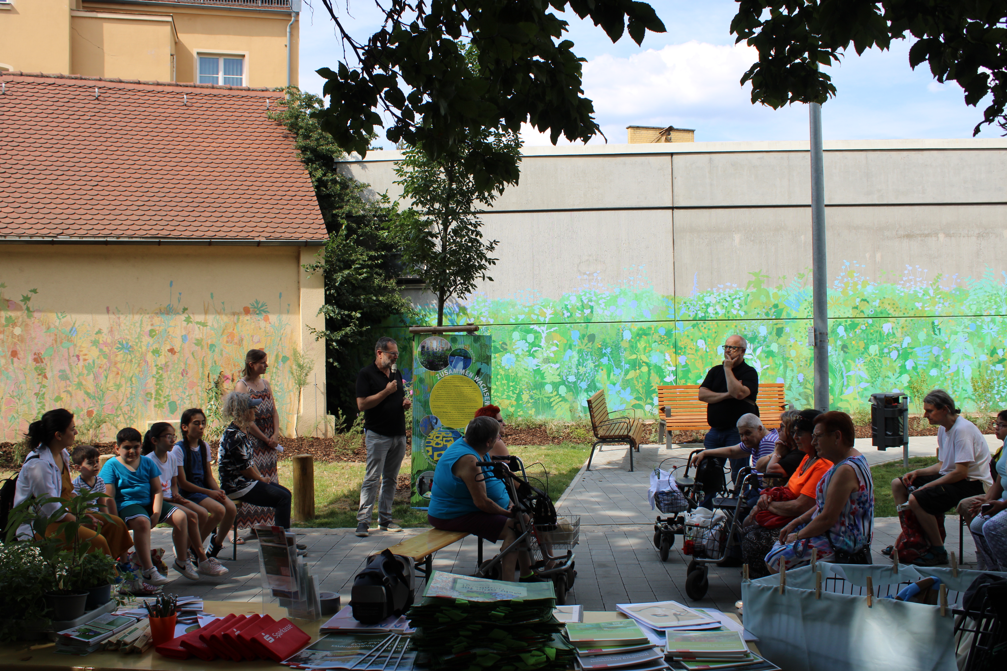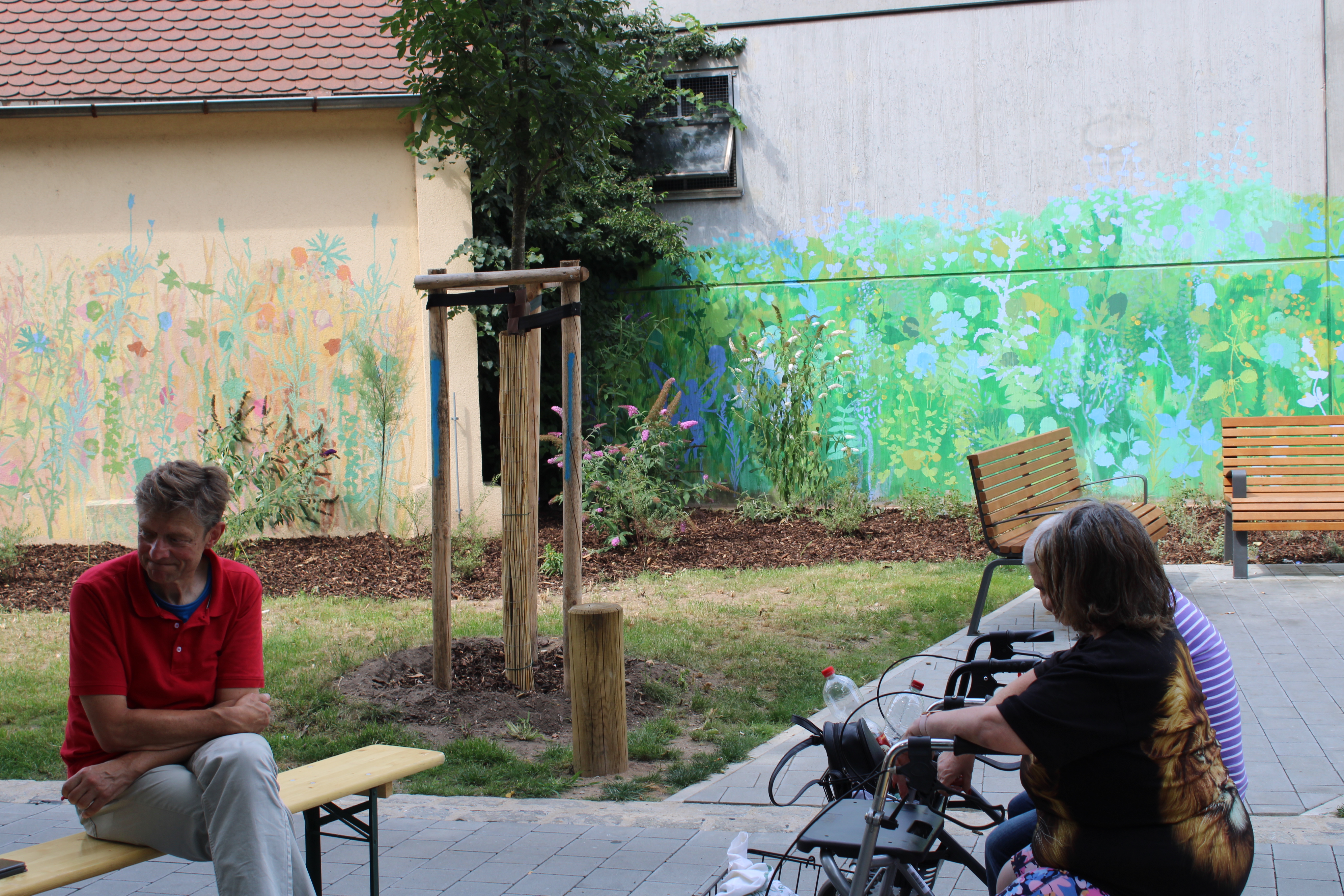 Am Freitag, den 19.07.2024, kamen Anwohnende und Interessierte des Quartiers zusammen, um mit dem Leiter des Stadtplanungsamtes, dem Quartiersmanagement und der Künstlerin, die offizielle Eröffnung des Pocket Parks zu feiern.