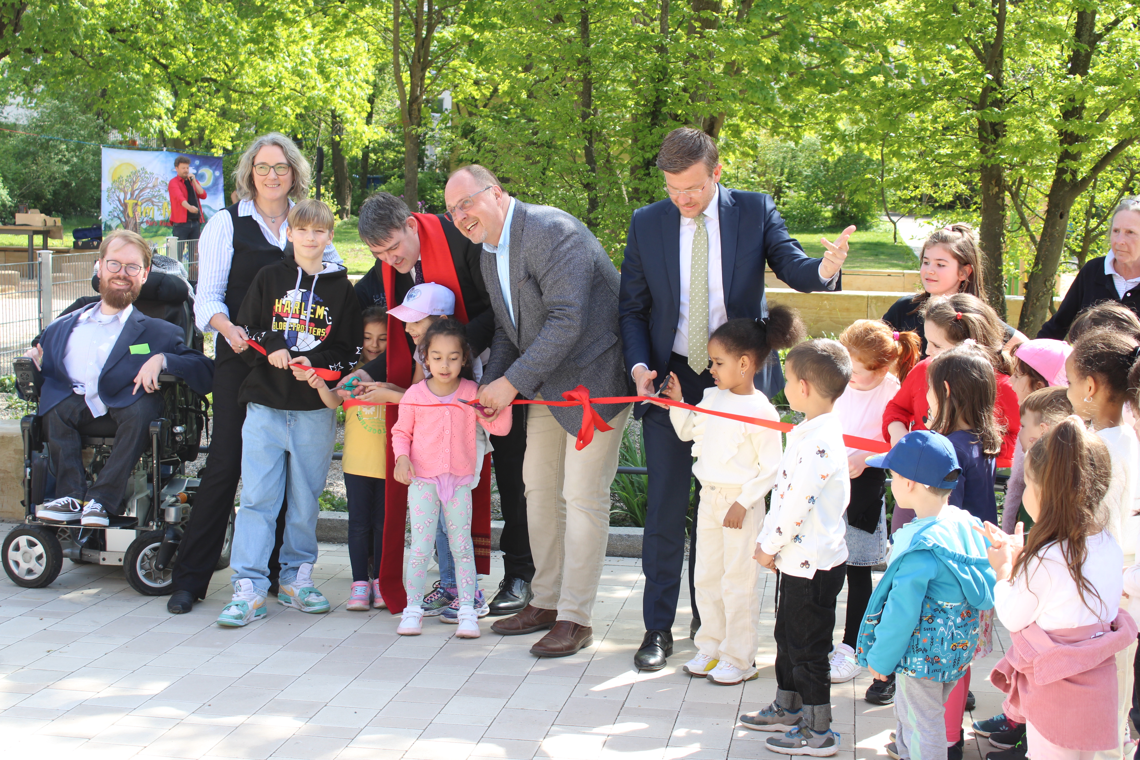 Oberbürgermeister Marcus König hat die Anlage gemeinsam mit Bürgermeister Christian Vogel am 12. April 2024 um 14 Uhr eröffnet. Begleitet wurde die Eröffnung von einem Quartiersfest auf dem Platz.