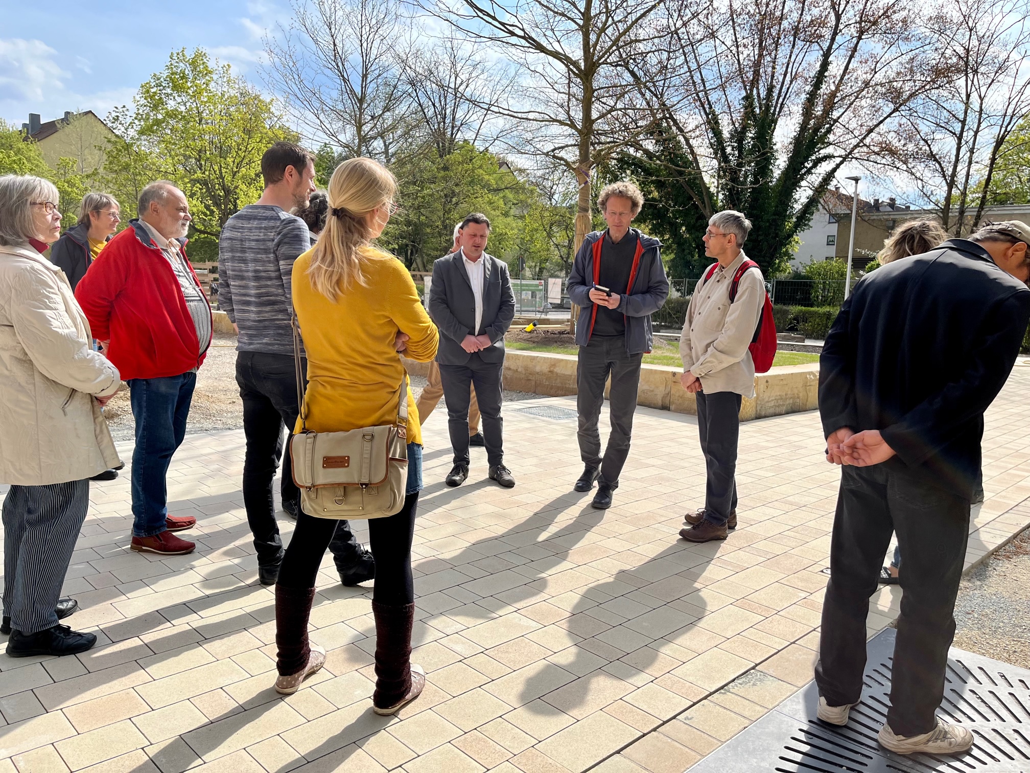 Am Donnerstag, 27. April 2023, fand ein öffentlicher Baustellenspaziergang am Helmut-Herold-Platz statt. Die Führung mit dem Nürnberger Landschaftsarchitekturbüro Riede vermittelte einen exklusiven Einblick in die Herausforderungen einer Großbaustelle.