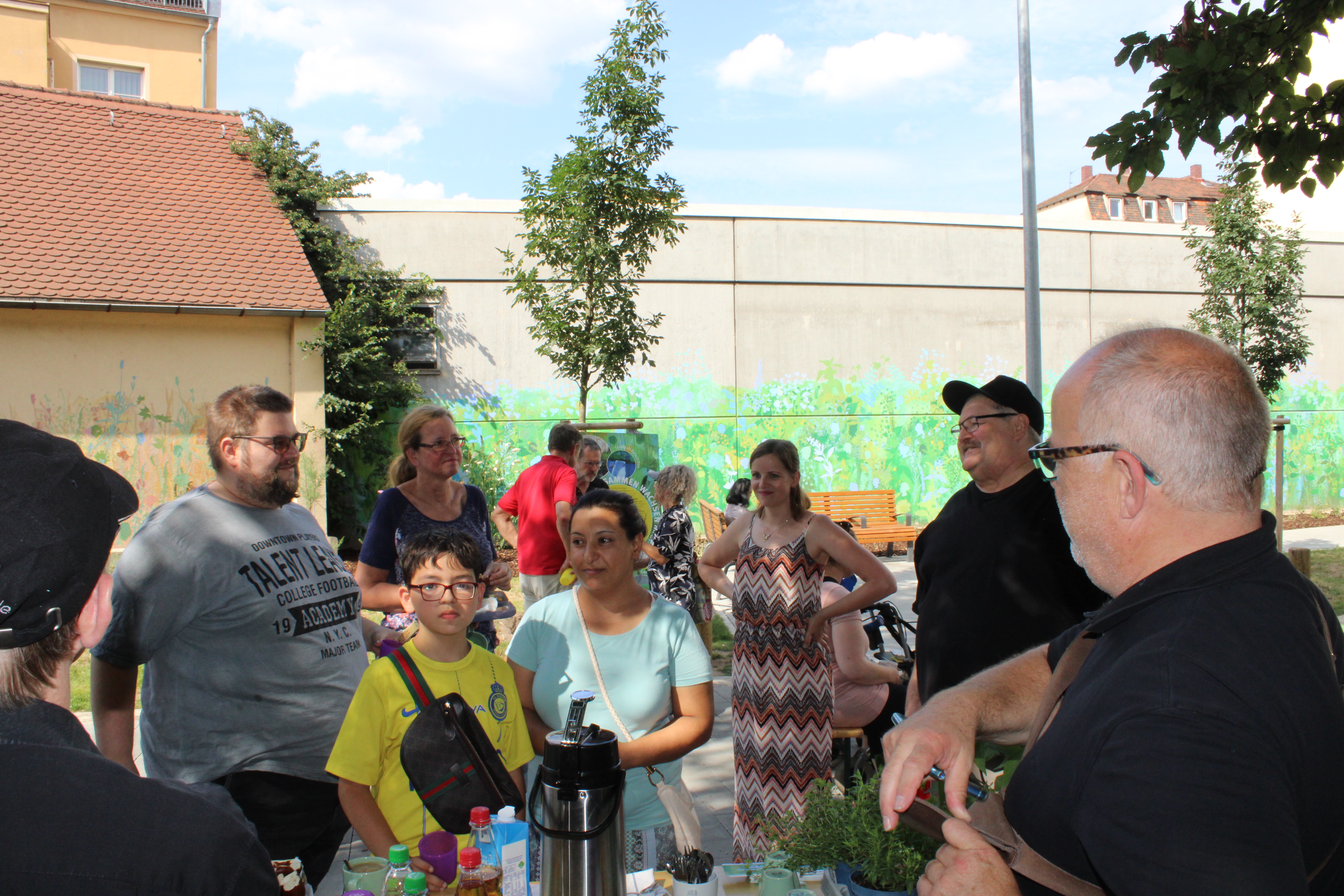 Jeder Besucher des Quartiersgartens konnte sich einen Kräutertopf der Noris Inklusion aussuchen und so einen Teil des Quartiersgartens mit zu sich nach Hause nehmen.