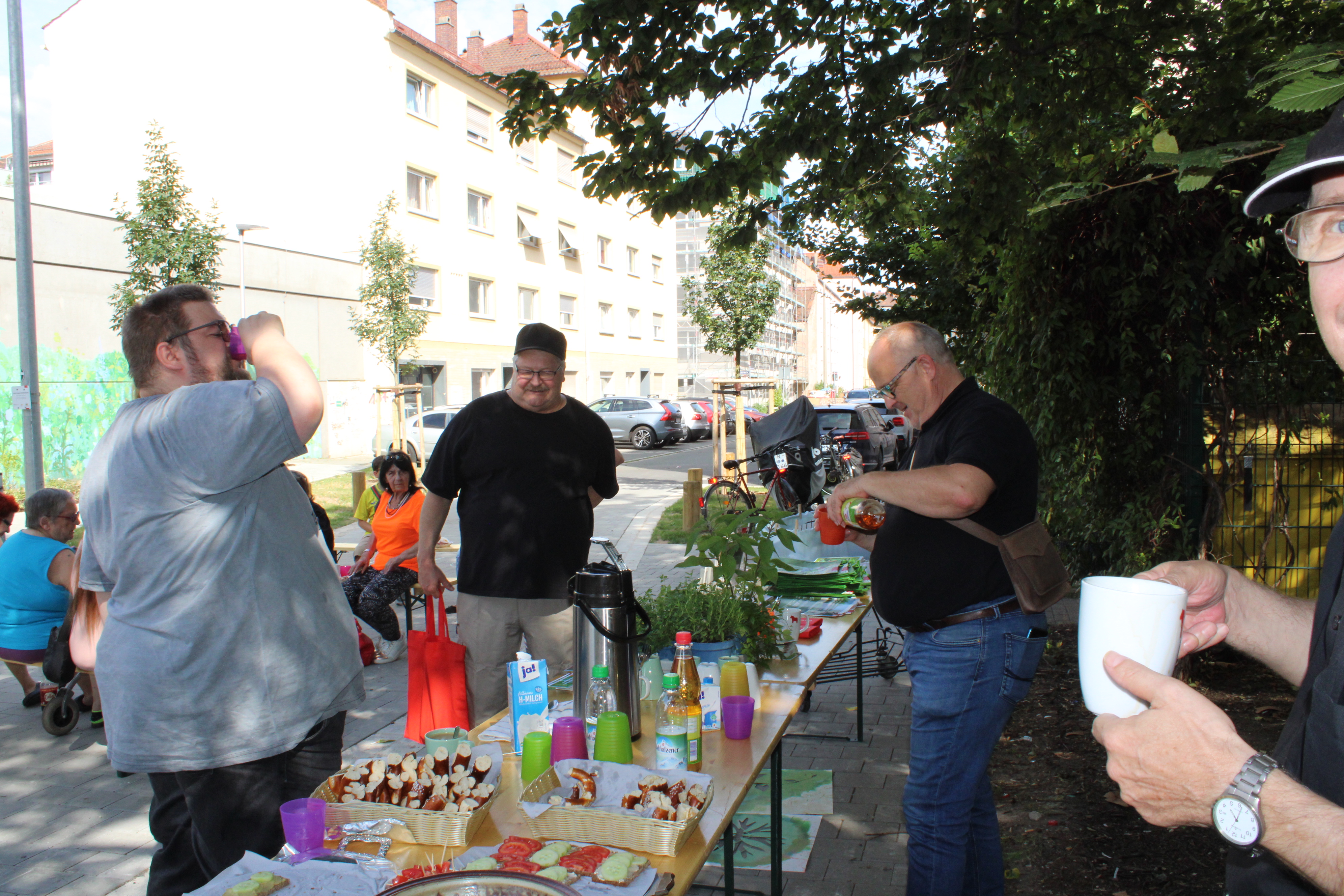 Die Band Moonlight Special schuf eine unbeschwerte Stimmung. Bei Kaffee und Kuchen konnten die Bewohner Gibitzenhofs ins Gespräch kommen und den Tag genießen.