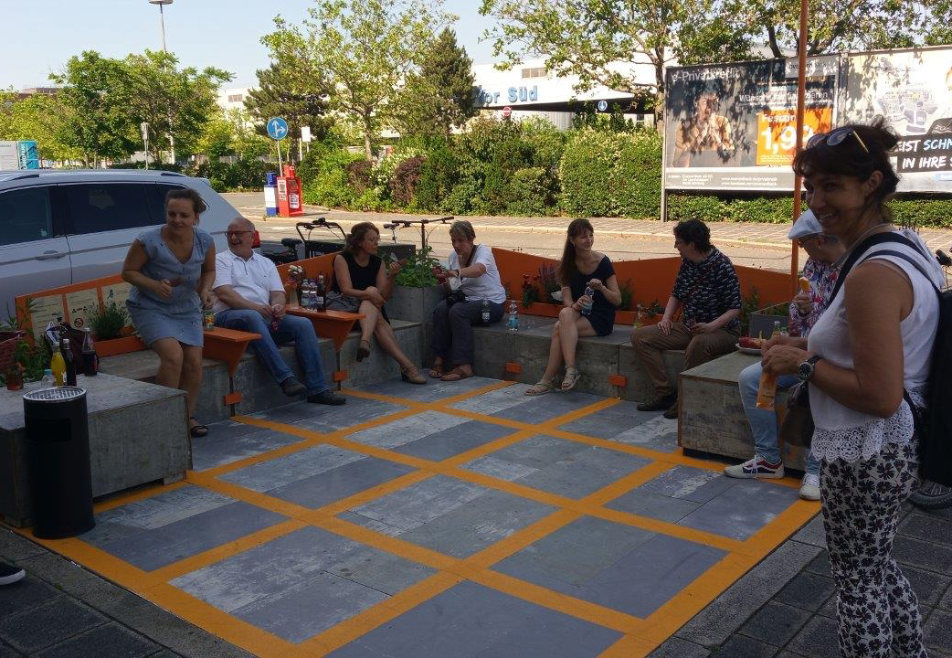Das Quartiersmanagement Südstadt hat zu einer „Tour de Parklet“ die Erbauer*innen, die „Paten*innen“ und die Stadtratsfraktionen in die Südstadt eingeladen, um die neu entstandenen Orte im öffentlichen Raum kennen zu lernen. Der Radkorso wurde angeführt von Siegfried Dengler, dem Leiter des Stadtplanungsamtes. Die Parklets sind unterschiedlich gestaltet, da es den individuellen Bedürfnissen und Ideen der Paten*innen angepasst wurde. Das Parklet in der Vogelweiherstraße ist das erste barrierefreie Parklet für die Paten*innen "Intergral e.V.".