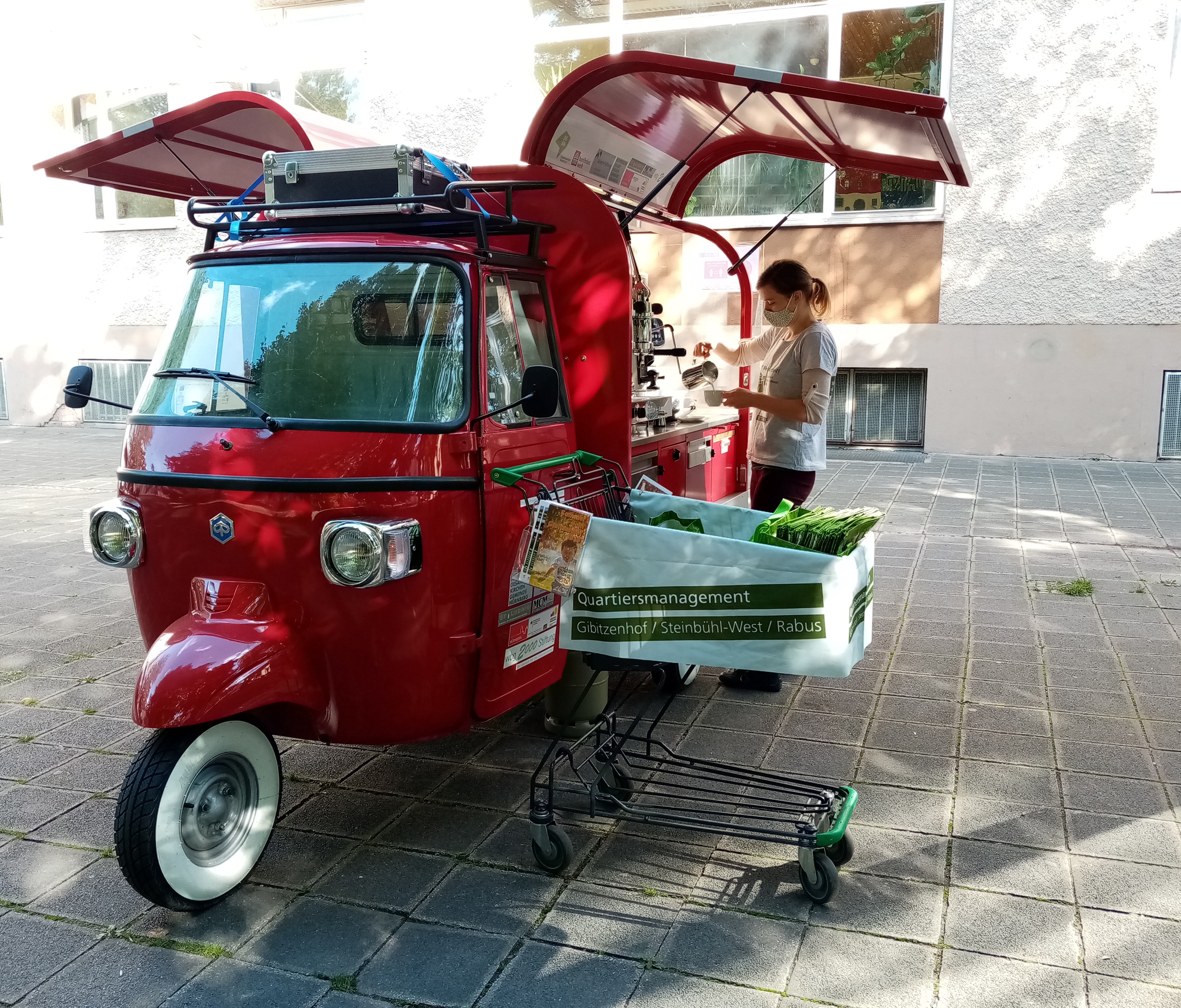 Anfang September hat das Quartiersmanagement an zwei Nachmittagen den Herschelplatz bespielt. Gemeinsam mit dem Mobilen Erfahrungsfeld der Sinne und dem Theater Rootslöffel gab es ein buntes Programm für Kinder. Und für Erwachsene wurde aus der neuen Gibitzenhofer Kaffee-Ape leckerer Cappuccino ausgeschenkt.