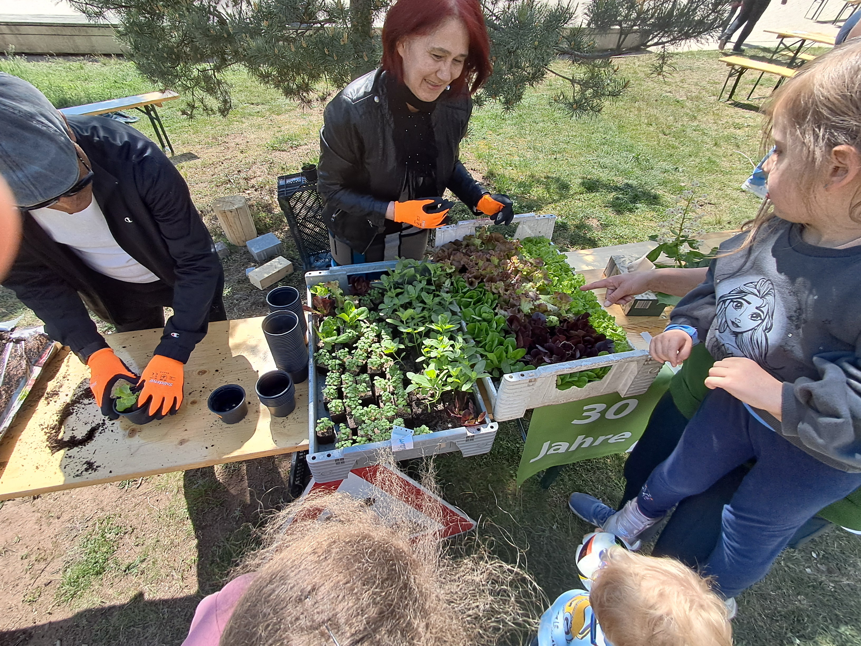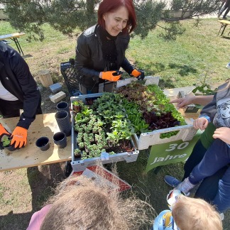 Bei einem Obstbaumgewinnspiel konnten Säfte gewonnen werden, Ansteckblumen wurden gebastelt, Samenbomben gebaut und auch Gymnastikübungen wurden angeboten.