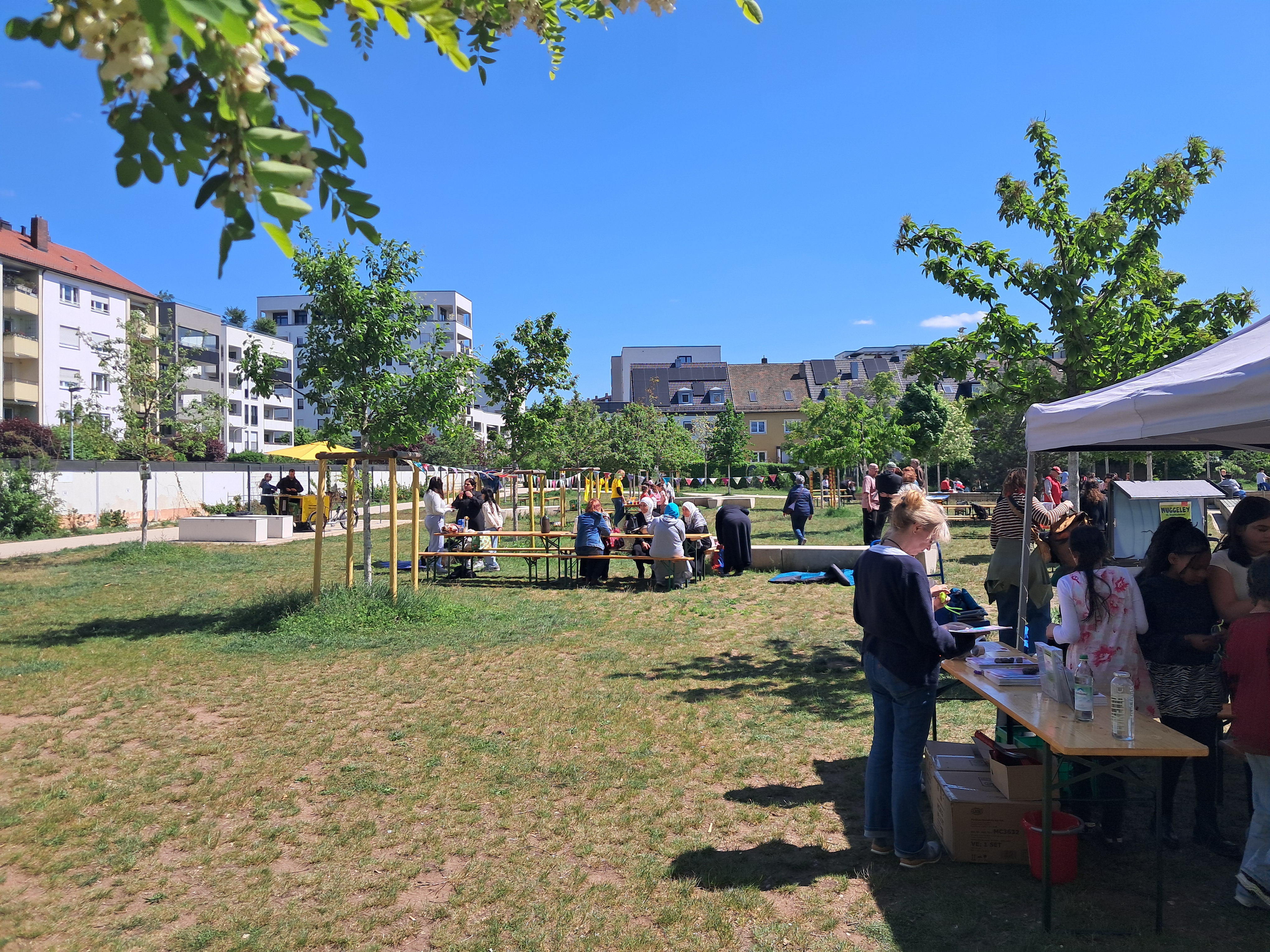 Am 9. April 2025 fand das zweite Stadtteilpicknick im Quelle-Park statt – organisiert von der Kulturwerkstatt „Auf AEG“, Obstbaum-Paten und dem Stadtteilarbeitskreis Muggenhof/Eberhardshof. Teil des Fests war das jährliche Blütenfest. Kreativangebote, ein Theaterstück, Müllmonster des ASN, Pflanzaktionen der mudra sowie Brotspenden und Tai Chi des Seniorennetzwerks boten ein buntes Programm. Kinder freuten sich über Zirkusspiele wie Diabolo und Sackhüpfen. Die Stadterneuerung informierte über Projekte, das Quartiersmanagement lud zum Obstbaum-Quiz ein. Alle genossen einen fröhlichen Nachmittag.