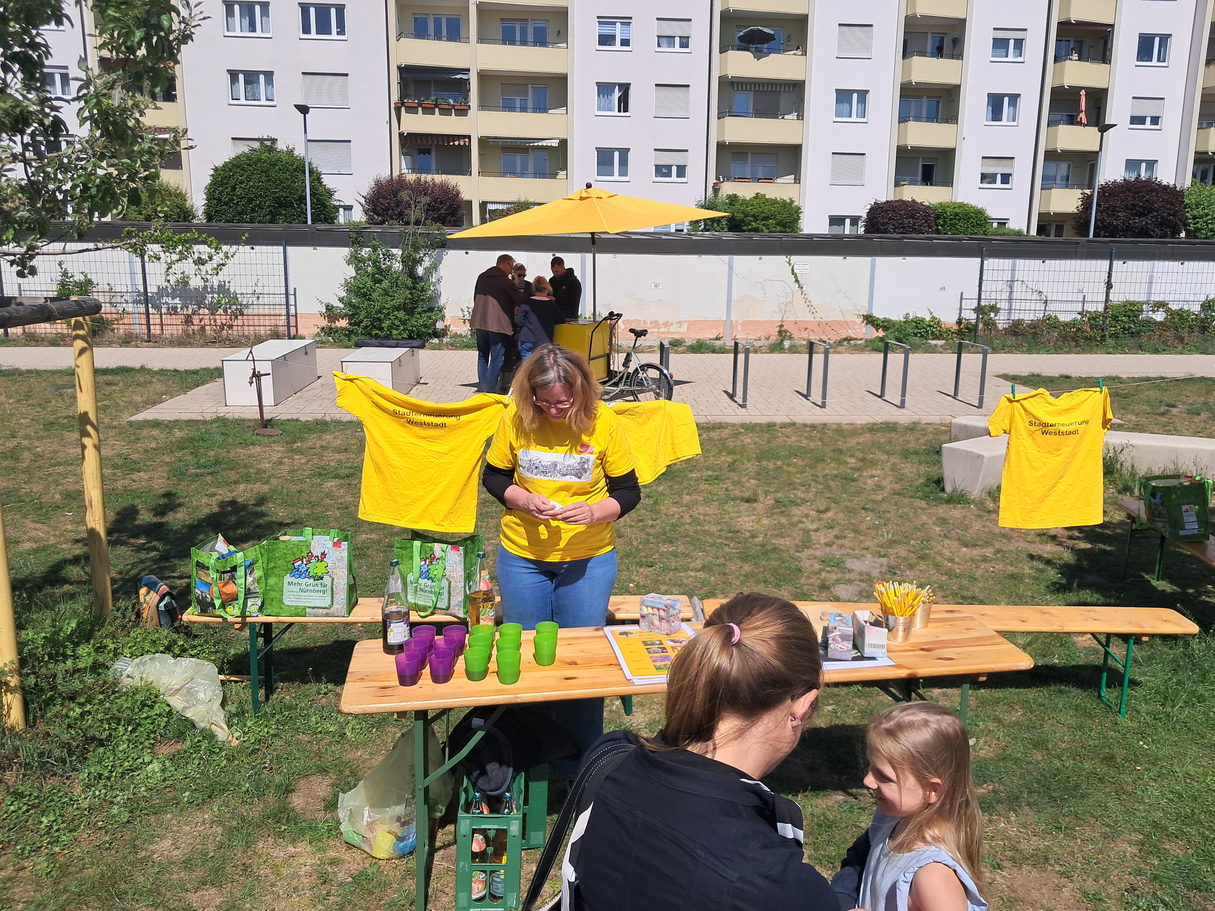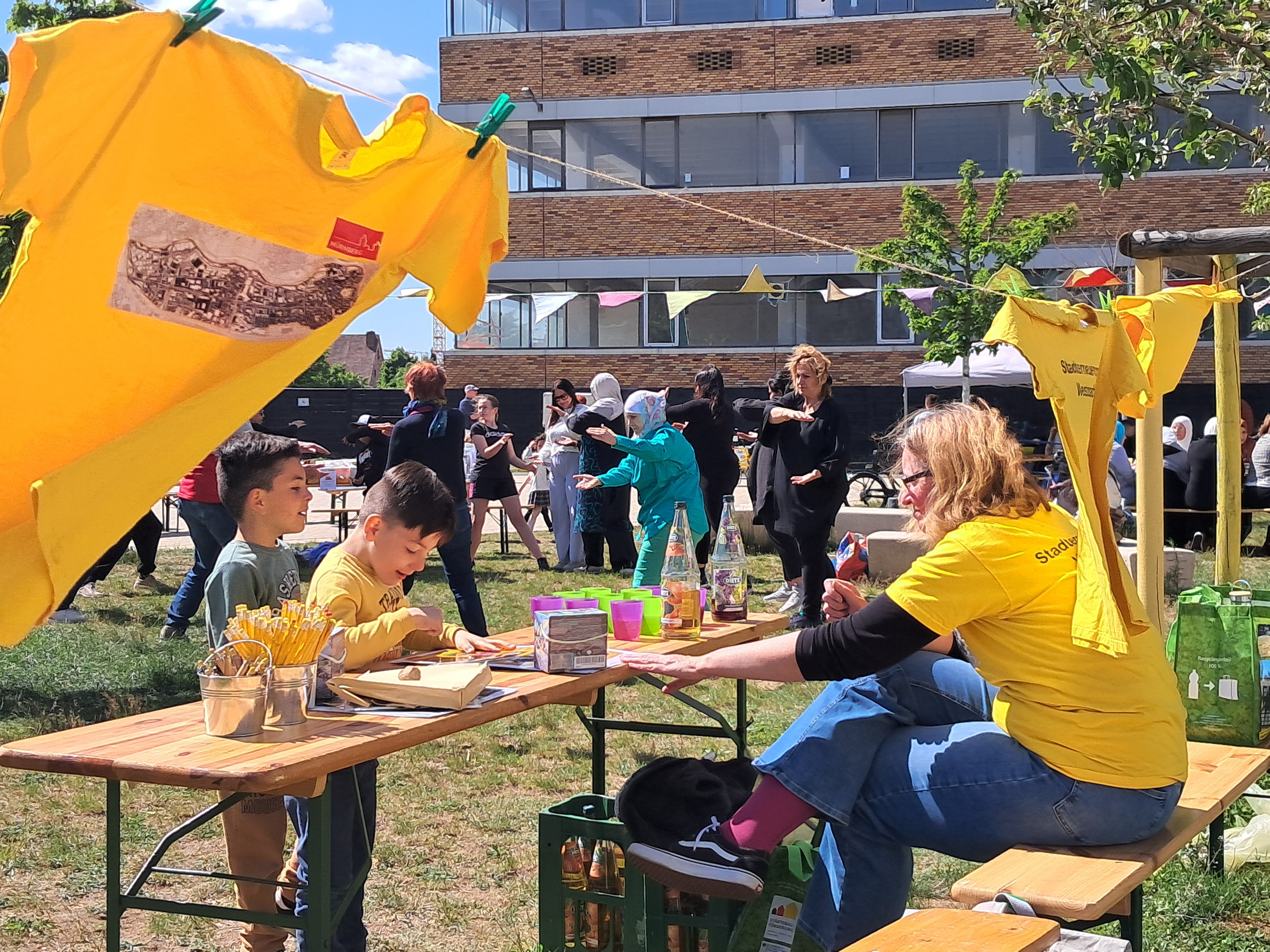 Am 15. Juni 2024 fand das diesjährige Stadtteilefest unter dem Motto Sommer|Sonne|Wasser statt! Vereine und Aktive stellten sich vor und boten allerlei Unterhaltung. Auch die Stadterneuerung und das Quartiersmanagement Weststadt informierten über Aktuelles und Zukünftiges. Gespräche mit den Bürgerinnen und Bürgern wurden sowohl zum Austausch, als auch für Rückfragen und Anregungen genutzt. Außerdem konnten Kinder bei einer Bastelaktion verschiedene Holzscheiben gestalten.
