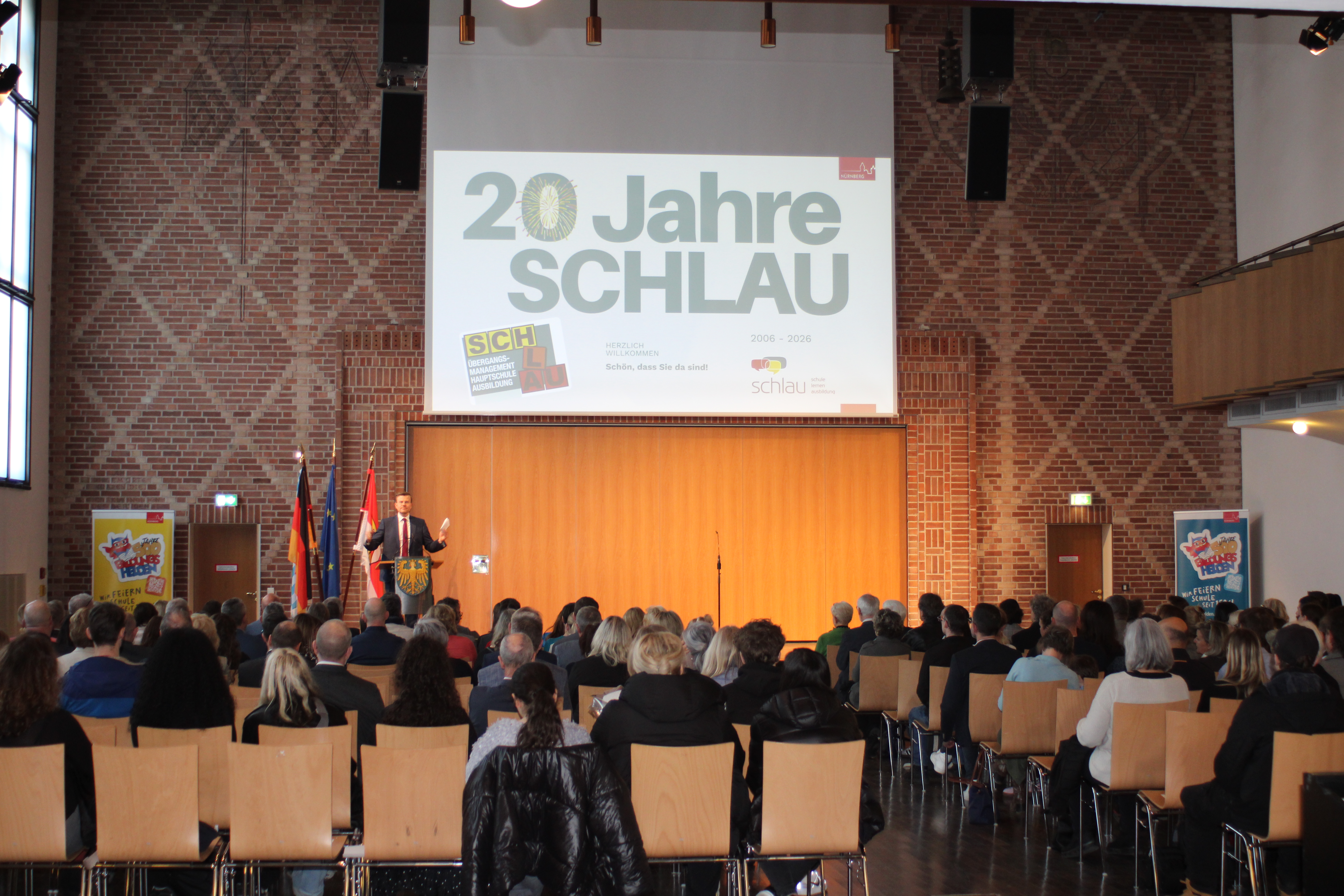 Anlässlich des 20. Geburtstags des Übergangsmanagements SCHLAU, lud Oberbürgermeister Marcus König am 26. Februar 2026 in den Heilig-Geist-Saal ein.