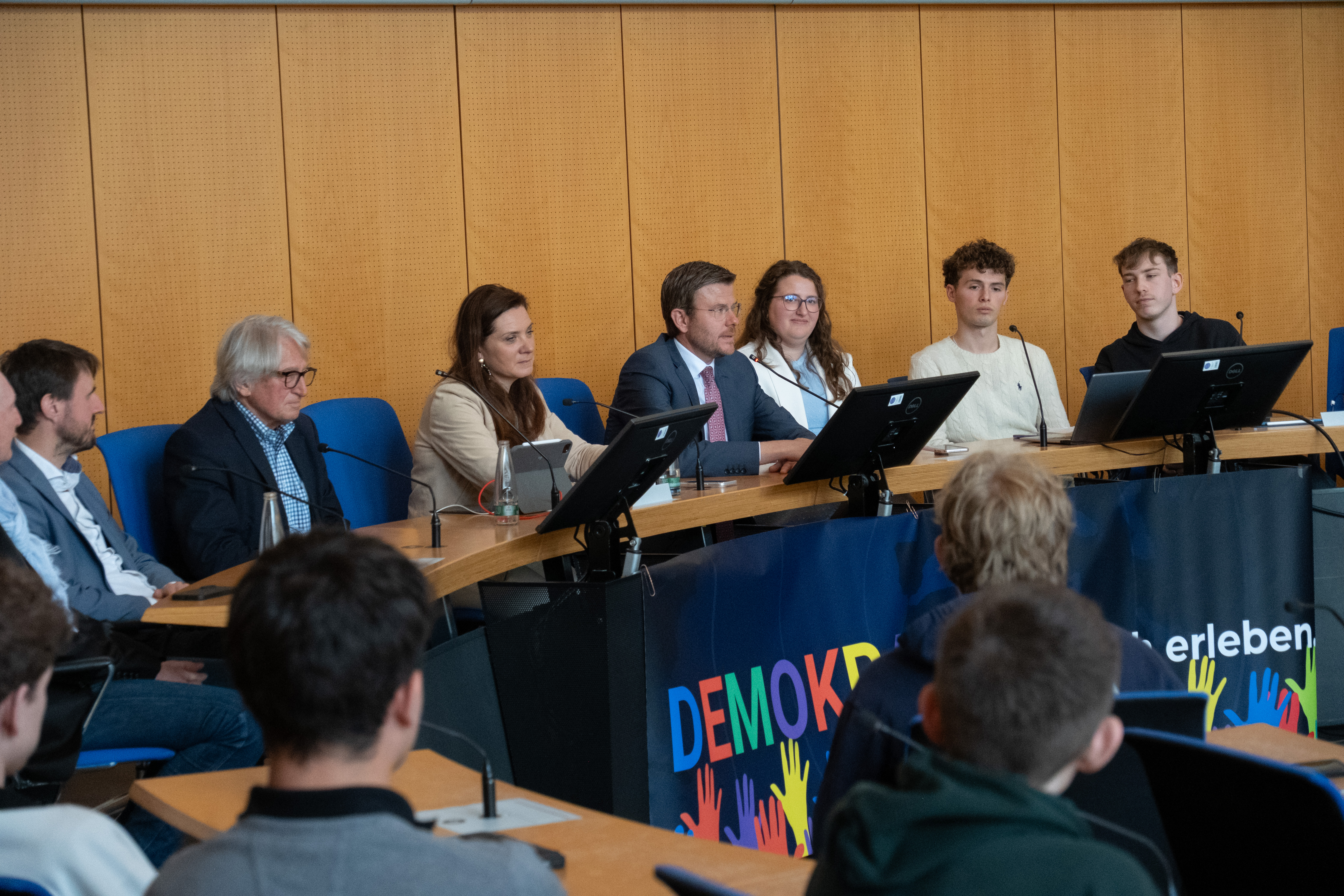 Auf Einladung der Schulreferentin fand im November 2024 die konstituierende Sitzung des Schulparlaments des Martin-Behaim-Gymnasiums im Großen Sitzungssaal statt. Das Schulparlament setzt sich paritätisch aus Schülerinnen, Schülern und Erwachsenen zusammen und ermöglicht den Jugendlichen Mitbestimmung bei Schulentscheidungen. So wird demokratische Teilhabe innerhalb der Schule erfahrbar gemacht. Das Angebot steht allen Schülerparlamenten offen.