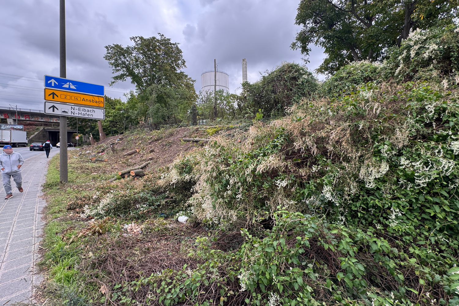 Anfang Oktober 2025 hat SÖR damit begonnen, die Fläche für die zukünftige Baustelleneinrichtung einzurichten. Für die Herstellung der Lagerfläche ist die Räumung der ehemaligen Schrebergartenparzellen sowie die Entfernung des dort vorhandenen Strauch- und Baumbewuchses erforderlich.
