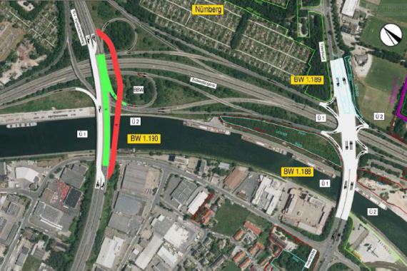 Es werden die beiden Verkehrsachsen „Hafenstraße“ und „Frankenschnellweg“ abgebrochen und neu gebaut.