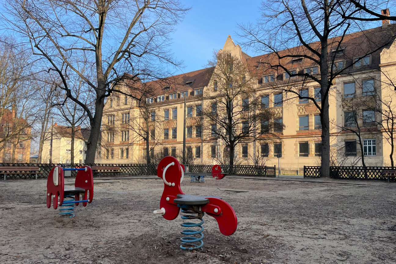 Als Highlight gilt der neue Spielplatz für drei- bis sechsjährige Kinder. Der in die Jahre gekommene alte Spielplatz wurde grundlegend erneuert. Vorab wurden die Wünsche der Kinder vorab in einer Kinderbeteiligung des Jugendamts abgefragt und in großen Teilen umgesetzt. Neben inklusiven Spielelementen wie einem Karussell und einem Trampolin verfügt er nun über einen Naturspielbereich, einen Sand- und Wasser-Matsch-Bereich, zusätzliche Sitzgelegenheiten sowie zwei miteinander verbundene Klettertürme mit Rutsche, Schaukeln und einem Spielehäuschen mit Sandbaustelle. Ab dem Frühjahr 2026 nimmt Sör das Wasserspiel auf dem Spielareal in Betrieb. Der Spielplatz wurde nach DIN 18034, Qualität und Inklusion auf Spielflächen, gestaltet. Damit leistet er einen wichtigen Beitrag dazu, Nürnberg schrittweise inklusiver zu gestalten, und ist Teil des Nürnberger Aktionsplans zur Umsetzung der UN-Behindertenrechtskonvention (inklusion.nuernberg.de).
