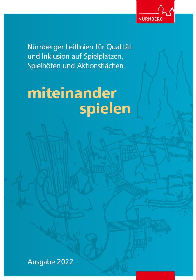 Das Amt für Kinder, Jugendliche und Familie – Jugendamt und der Servicebetrieb Öffentlicher Raum Nürnberg (SÖR) haben 2022 als erste Großstadt verbindliche Leitlinien zur Bewertung der Nürnberger Spielflächen formuliert. Diese konkretisieren und erläutern die Anforderungen der DIN 18034 an Spielplätze, Spielhöfe und Aktionsflächen hinsichtlich der Themen Qualität und Inklusion für die Stadt Nürnberg mit Hilfe von Leitideen, Skizzen und Fallbeispielen. Sie dienen der Veranschaulichung, wie Anforderungen hinsichtlich Qualität und Inklusion auf Spielflächen normgerecht umgesetzt werden können.