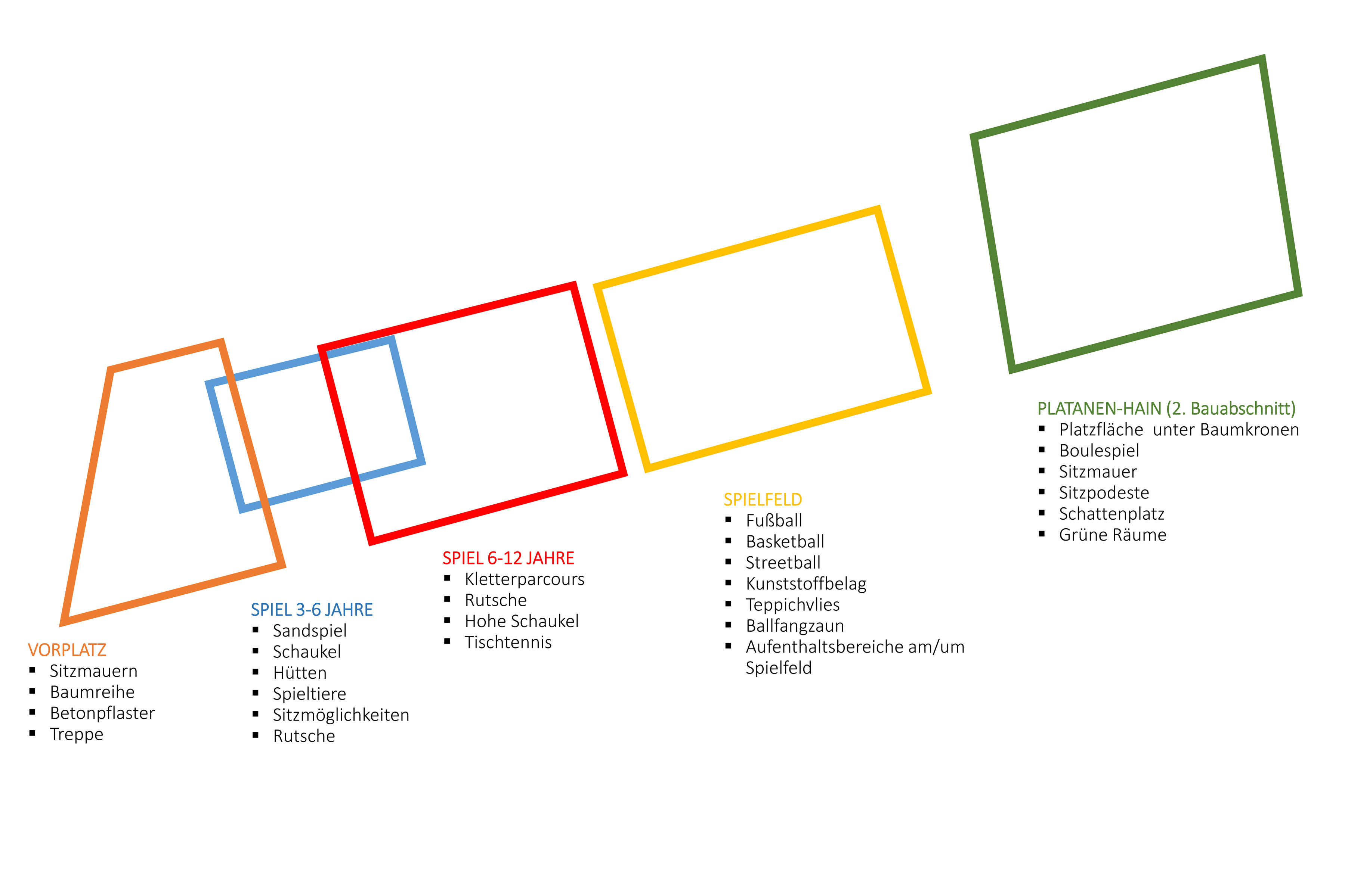 Für die Älteren von sechs bis zwölf Jahren stehen ein Kletterparcours, eine Rutsche, eine hohe Schaukel sowie eine Tischtennisplatte bereit. Daneben gibt es ein neues Spielfeld, das für Fußball, Basketball und Streetball genutzt werden kann, mit einem Ballfangzaun abgetrennt.