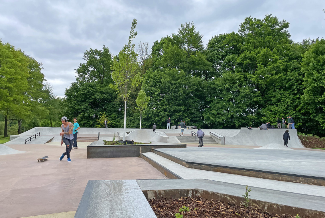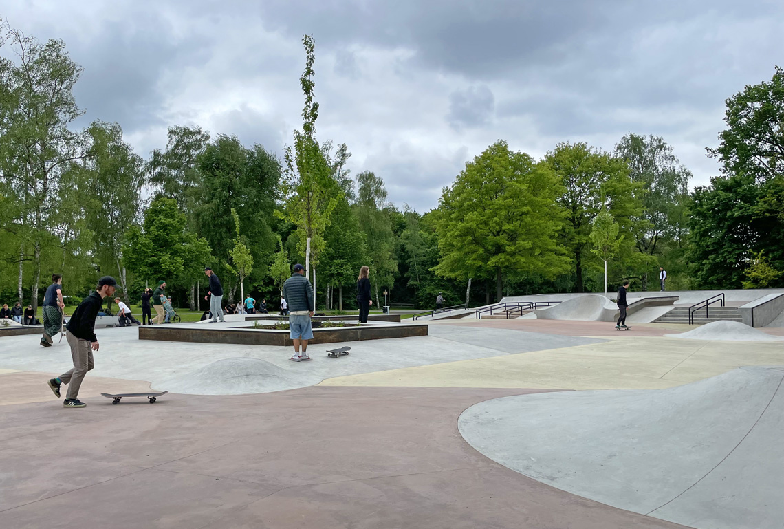 SÖR hat die Skateanlage an der Münchener Straße im Volkspark Dutzendteich erneuert. Die bestehende, in die Jahre gekommene Anlage wurde durch einen neuen und zeitgemäßen Skatepark ersetzt, der sich in die urbane Parklandschaft des Volksparks einfügt.