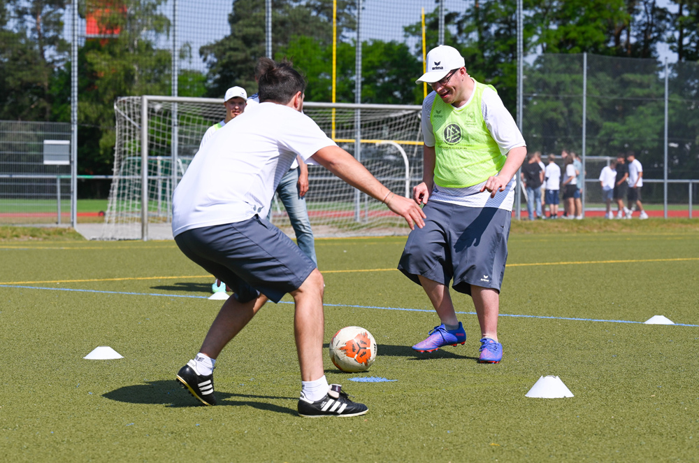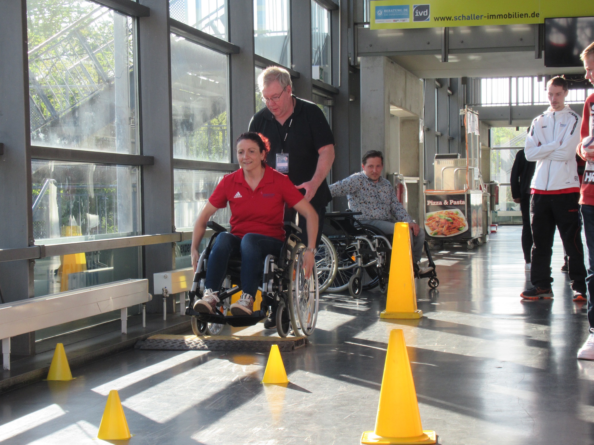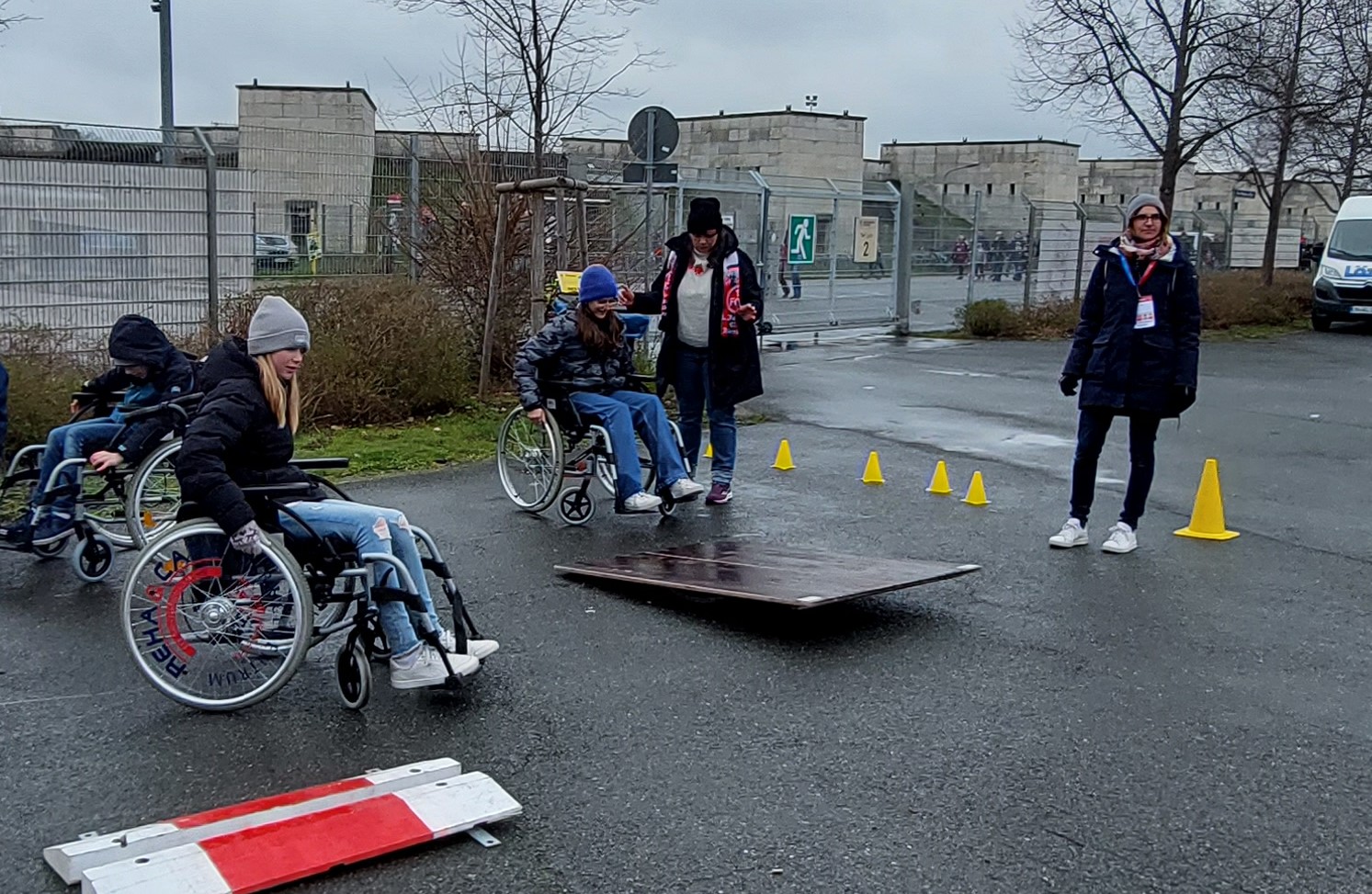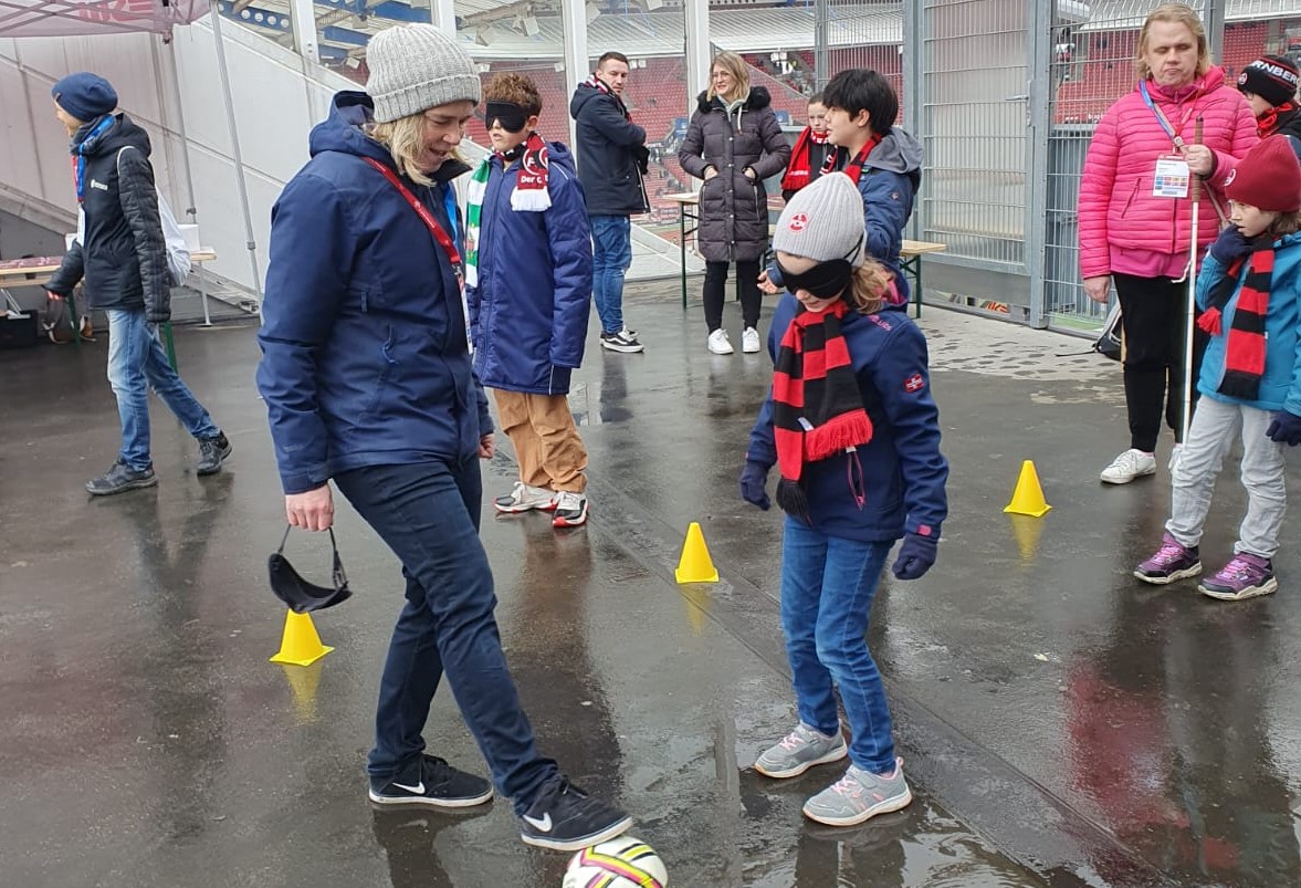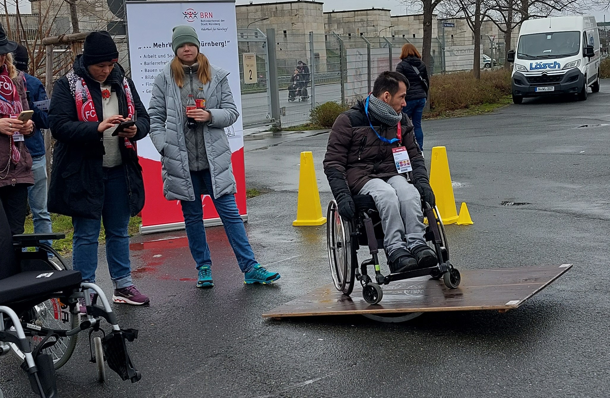 So erhielten Förderschulen, Einrichtungen der Behindertenarbeit, Werkstätten und Wohnheime schon vorab 200 Sozialtickets für den Spieltag. Die Stadionsprecher Florian Kerschner und Jörg Dippold wurden von Rene Funken aus dem FCN-Inklusionsteam im Stadion begleitet. Daneben gab es einige Mitmachangebote für alle, die Inklusion erleben wollten: Im Stadionumlauf organisierten der Behindertenrat Nürnberg und der Post SV, unterstützt von Reha & Care in Nürnberg Altenfurt, einen Rollstuhl-Parcours. Sportlich wurde es auch bei der Blindenfußball-Station am Kids-Stand vor dem Familienblock, unterstützt von Nicole Bittner, die selbst erblindet ist. Einen ganz besonderen Moment der Teilhabe konnten zwei geistig beeinträchtigte Volunteers erleben: Im Einsatz als Tandem mit einem Volunteer des 1.FCN betreuten sie die Einlaufkinder des Fußballspiels und unterstützten die Pressefotografen.